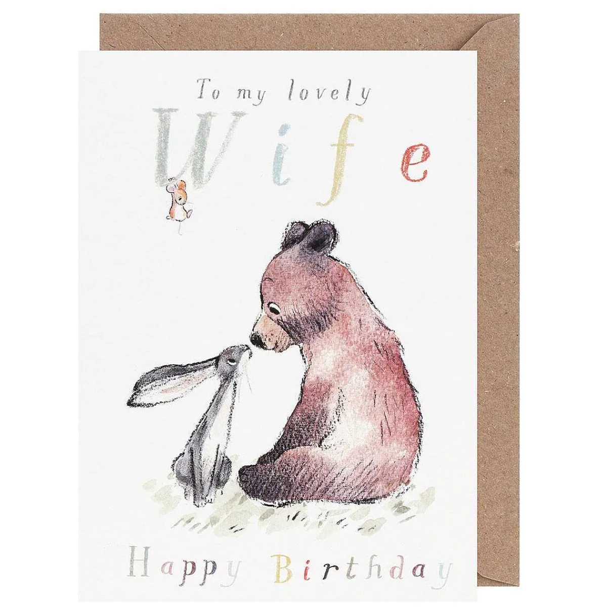 Send A Birthday Message To Your Wife With This Charming Soft Pencil And Watercolour Greeting Card From Paper Shed Designs, Part Of The Bear, The Hare & The Mouse Collection.