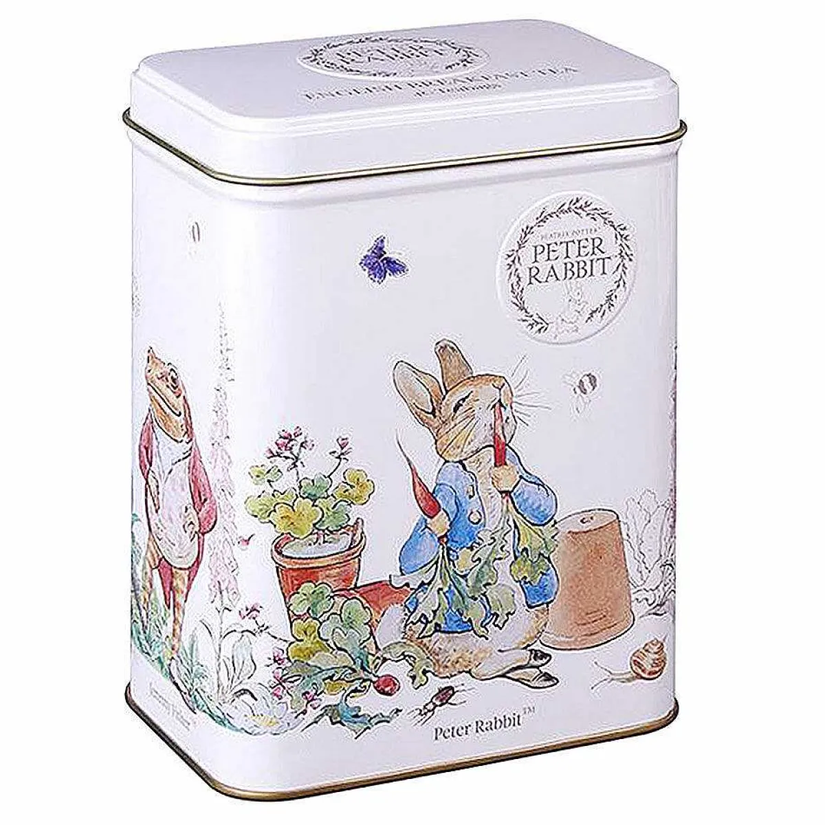Celebrating All Things Quintessentially British, This Elegant Tea Tin Is Decorated With Wonderful Illustrations Of Peter Rabbit And His Friends, Including Mr. Jeremy Fisher And The Tailor Of Gloucester. The Drawings Are Done In The Watercolour Style Of Beatrix Potters Classic Books, Set Upon A Wonderful Lilac Background. The Peter Rabbit Logo Has Been Embossed Into The Surface, Along With Gold Accents Around The Border.