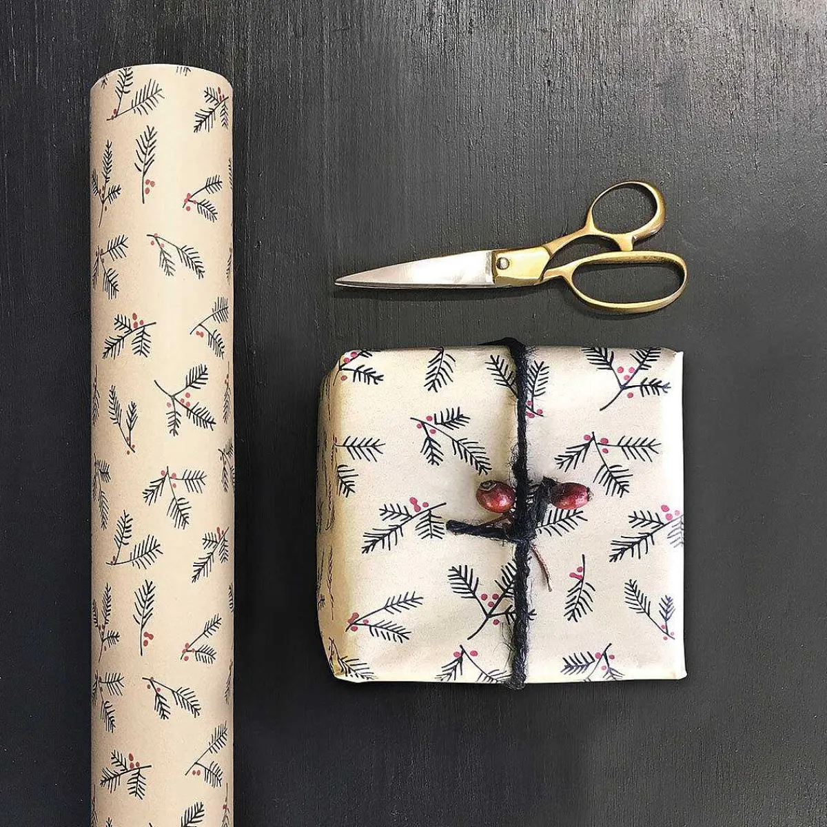 Wrap Your Gifts With Love This Christmas With This Stunning Wrapping Paper From East Of India. Featuring Hand Drawn Illustrations Of Berry Branches, This Eco-Friendly Gift Wrap Is Brown In Colour Which Beautifully Contrasts The Black And Red Berry Branches.