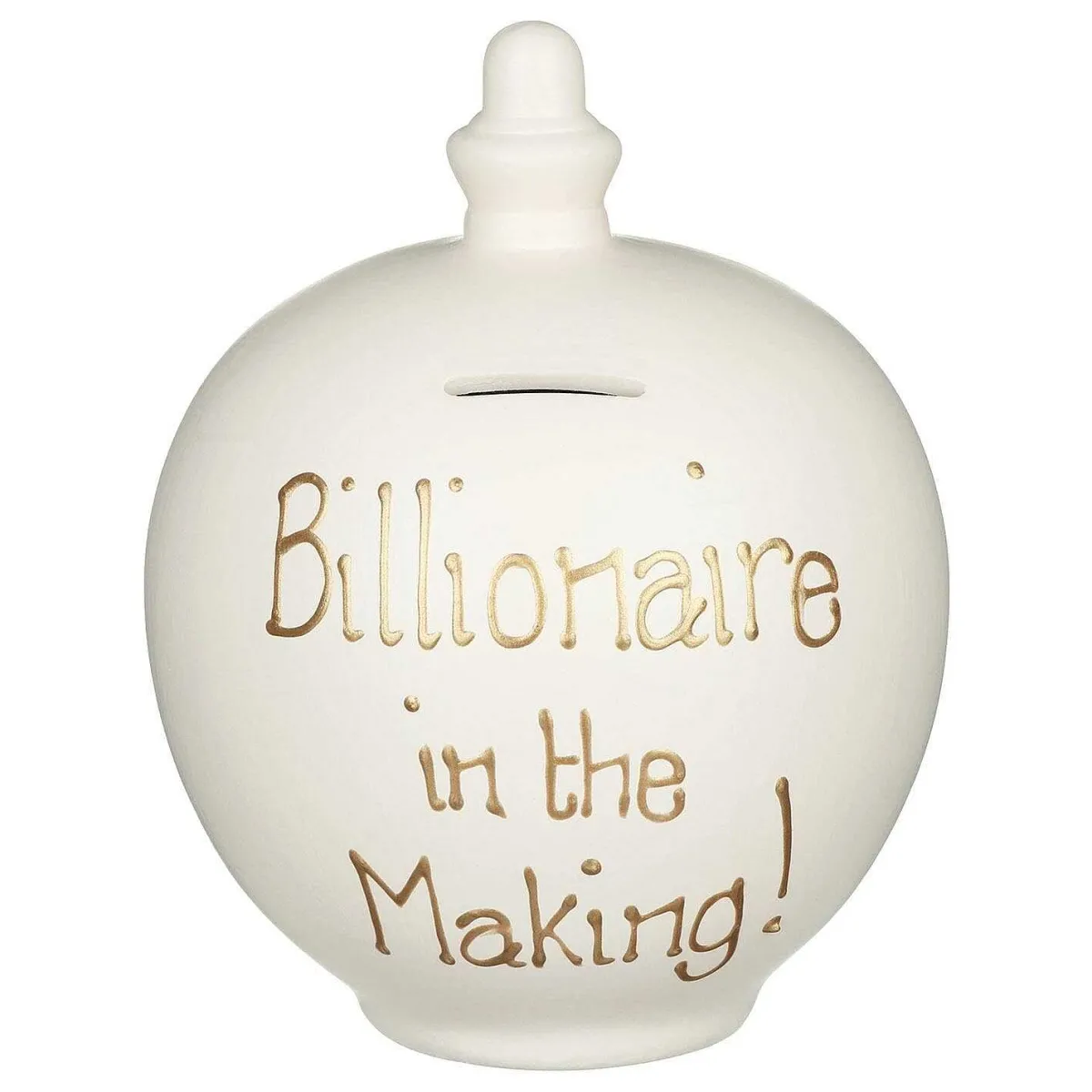 Whatever You Are Saving For, This Brilliant ‘Billionaire In The Making’ Money Pot Is The Perfect Way To Ensure The Pounds Are Taking Care Of Themselves! The Soft Cream Colour And Beautiful Gold Font, Reading The Message ‘Billionaire In The Making!’ Ensure That This Pot Is A Center Piece To Be Proud Of! The Reverse Has Been Left Blank, And We Would Highly Recommend Personalising It To Add A Lovely Personal Touch To Your Pot Whether It Is A Treat For A Loved One Or A Gift For You!