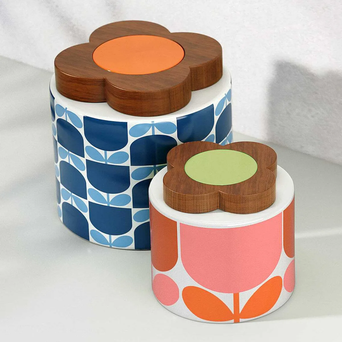 Add Some Seventies Style To Your Kitchen With A Bold Floral, Coloured Print From Orla Kiely! This Ceramic Storage Jar Is Perfect For Your Tea Bags, Coffee Or Sugar, You Could Even Use It For Treats Or Other Delights!