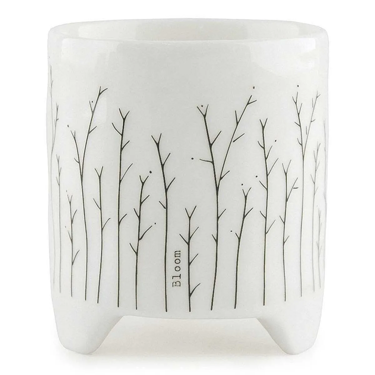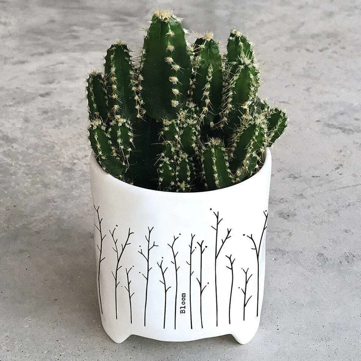 This Item Is Decorated With Illustrations Of Sprigs Of Wildflowers Of All Different Kinds. Etched Vertically Next To A Flower It Reads ‘Bloom’ In A Vintage Typewriter Style Font. With Four Little Legs This Piece Will Look Perfect With Any Sort Of Aloe, Succulent Or Cactus Placed In It.