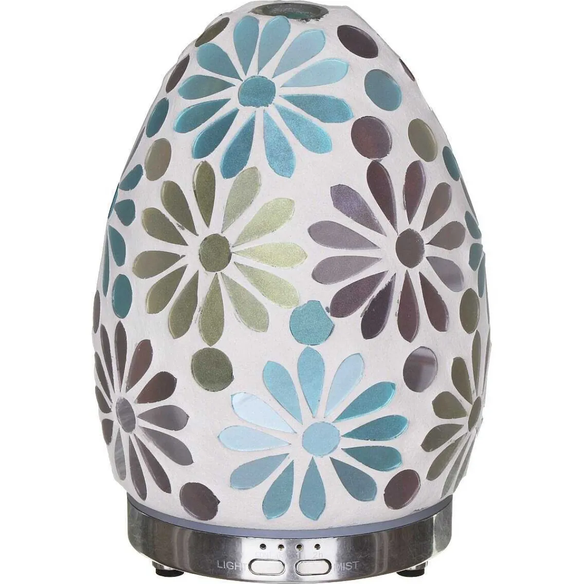 This Blue Flower Mosaic Egg Colour Changing Aroma Humidifier Releases A Cool And Calming Scented Dry Mist Which Sure To Relax You When You Need It Most – Perfect For Aromatherapy Treatments. Simply Fill The Humidifiers Tank With Water And A Few Drops Of Your Favourite Essential Oils (Sold Separately).