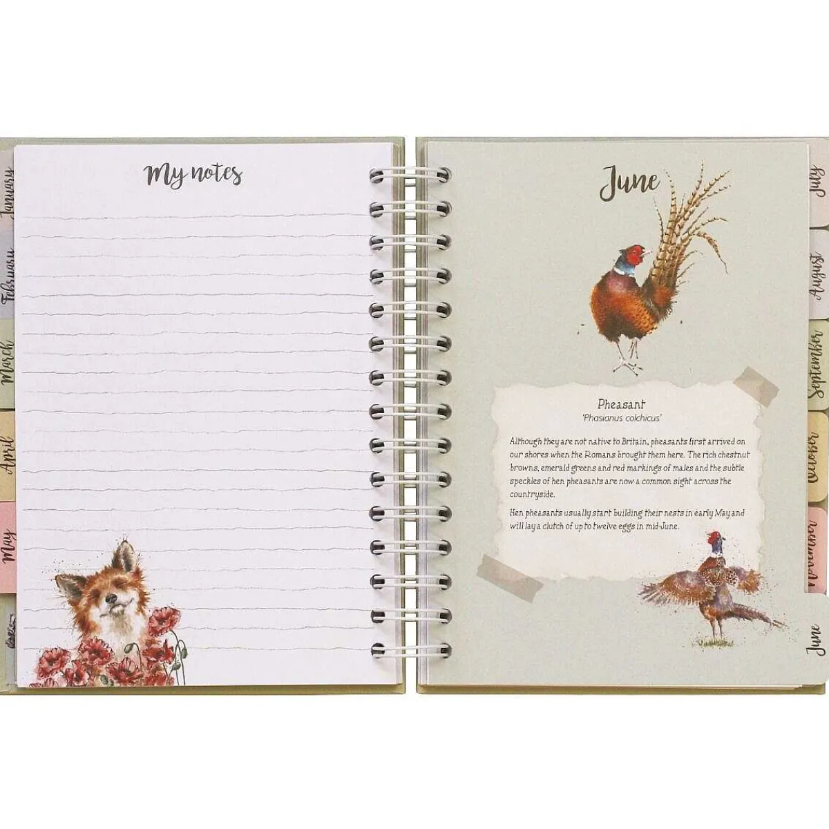 Split Into Monthly Sections With Colourful Dividers, It Makes Logging Wildlife Finds Easy And Enjoyable! It Has Different Animals And Flowers For You To Spot Each Month, With Space On Each Day To Fill Out What You Have Seen! Complete With A Beautiful Watercolour Design Of The Iconic Wrendale ‘Bright Eyes And Bushy Tailed’ Fox Design On The Cover, Set Against A Green Textured Background. Each Page Has A Different Countryside Animal Designed In The Watercolour Theme That Is Synonymous With The Wrendale Brand.
