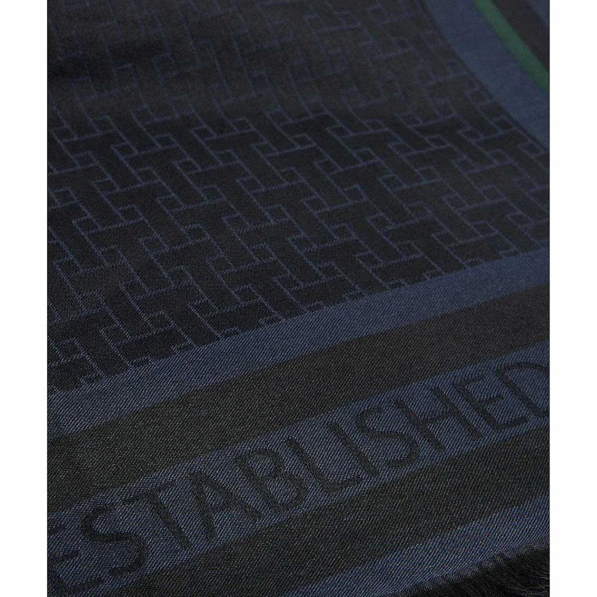 Made From 100% Recycled Polyester, This Scarf Has Both Comfort And Style In Mind. Decorated With A Repeated âTâ Pattern In Navy, The Subtly Of This Design Is Wonderfully Set Against A Deep Black Background. There Is Ted Baker Branding Around The Edges As Well As Extra Green And Navy Details. Versatility At Its Best, This Scarf Will Be A Staple In Any ManâS Wardrobe, Whether You Choose To Wear It Will Smart Or Casual Attire. As Classic As It Is Comfy, This Scarf Will Become Your Go-To Throughout The Winter As The Weather Gets Colder.
