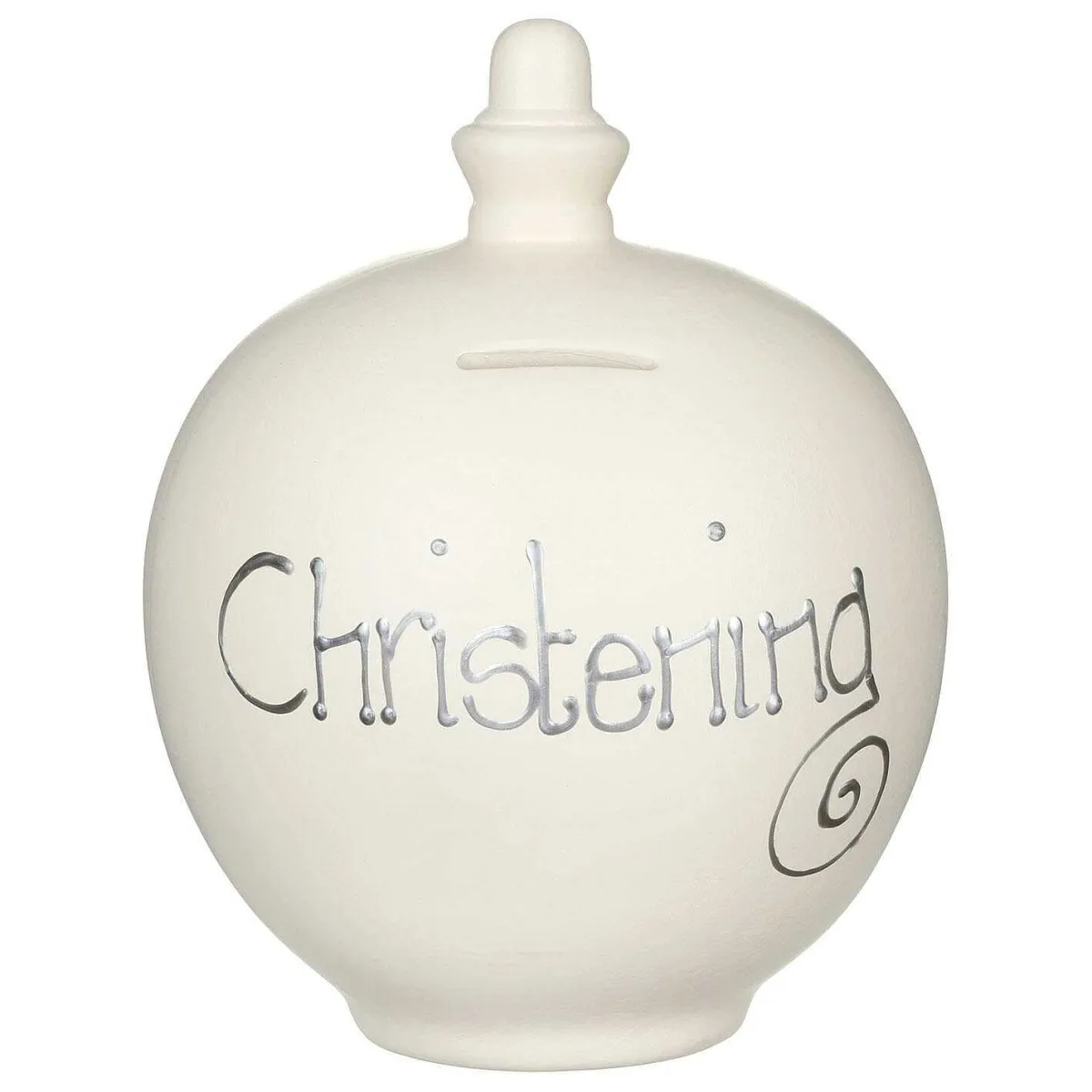 Celebrate The Christening Of Someone Special With This Brilliant Money Pot! The Soft Cream Colour And Beautiful Silver Font, Reading The Message ‘Christening’ Ensure That This Pot Is A Center Piece To Be Proud Of! The Reverse Has Been Left Blank, And We Would Highly Recommend Personalising It To Add A Lovely Personal Touch To Your Pot Whether It Is A Treat For A Loved One Or A Gift For You!