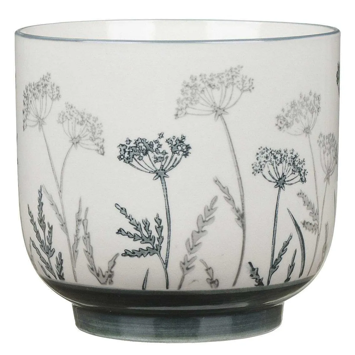 Made From Glazed Cream Ceramics With A Painted Grey Base, This Large Plant Pot Is Shaped With A Stylish Simplicity That Gives It An Artisan Feel. It’S Embellished With A Handpainted Floral Pattern Depicting Cow Parsley In Exquisite Detail.