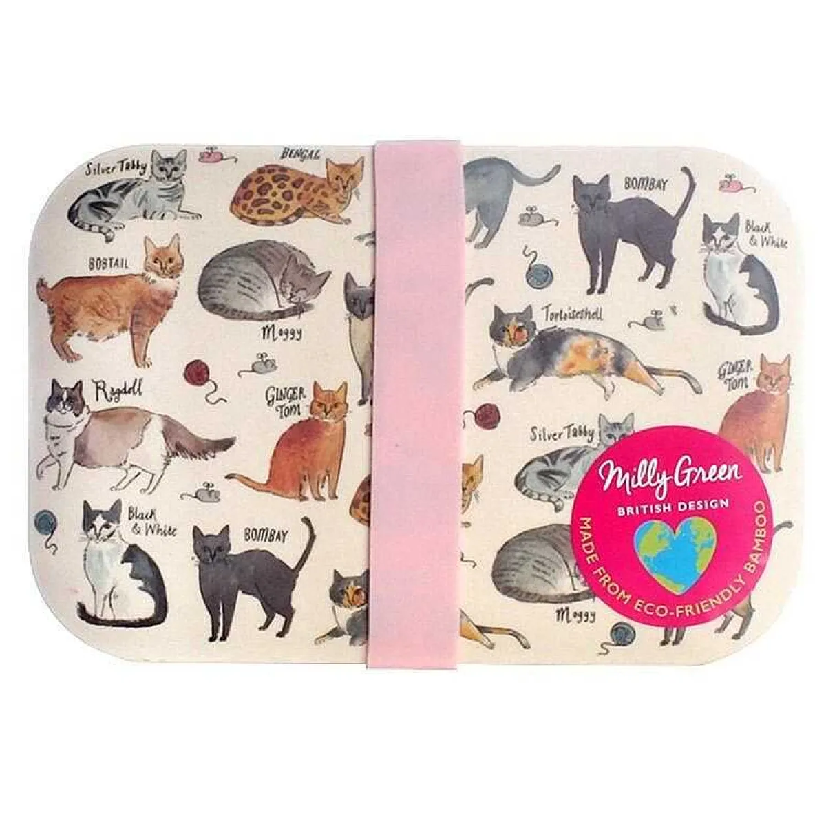 Milly Green Curious Cats Bamboo Lunch Box