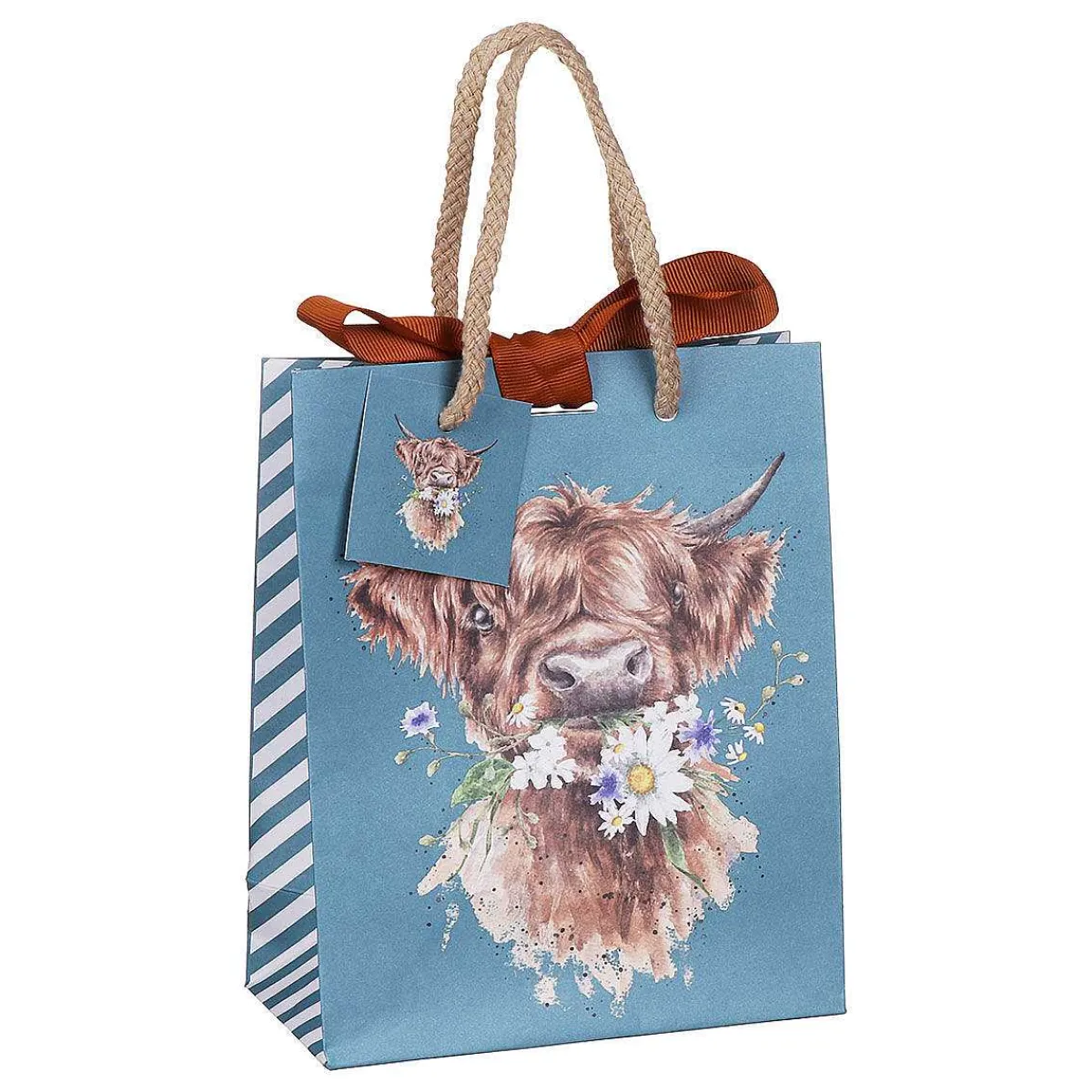 Give Your Gift In The Most Gorgeous Of Ways With This Charming Gift Bag From Wrendale Designs. Perfect For Lovers Of Rural Animals, This Little Bag Features A Watercolour Portrait Of A Scottish Highland Cow With Scruffy Brown Fur. The Cow Is Munching Away Happily Of A Bunch Of Daisies And Other Wildflowers, Depicted On A Teal Background, Surrounded By Speckles Of Paint In A Way That Is Synonymous With The Wrendale Brand.