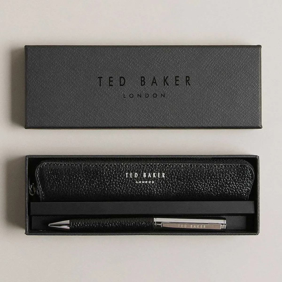 Ted Baker Danns Black Leather Pen And Pouch Set