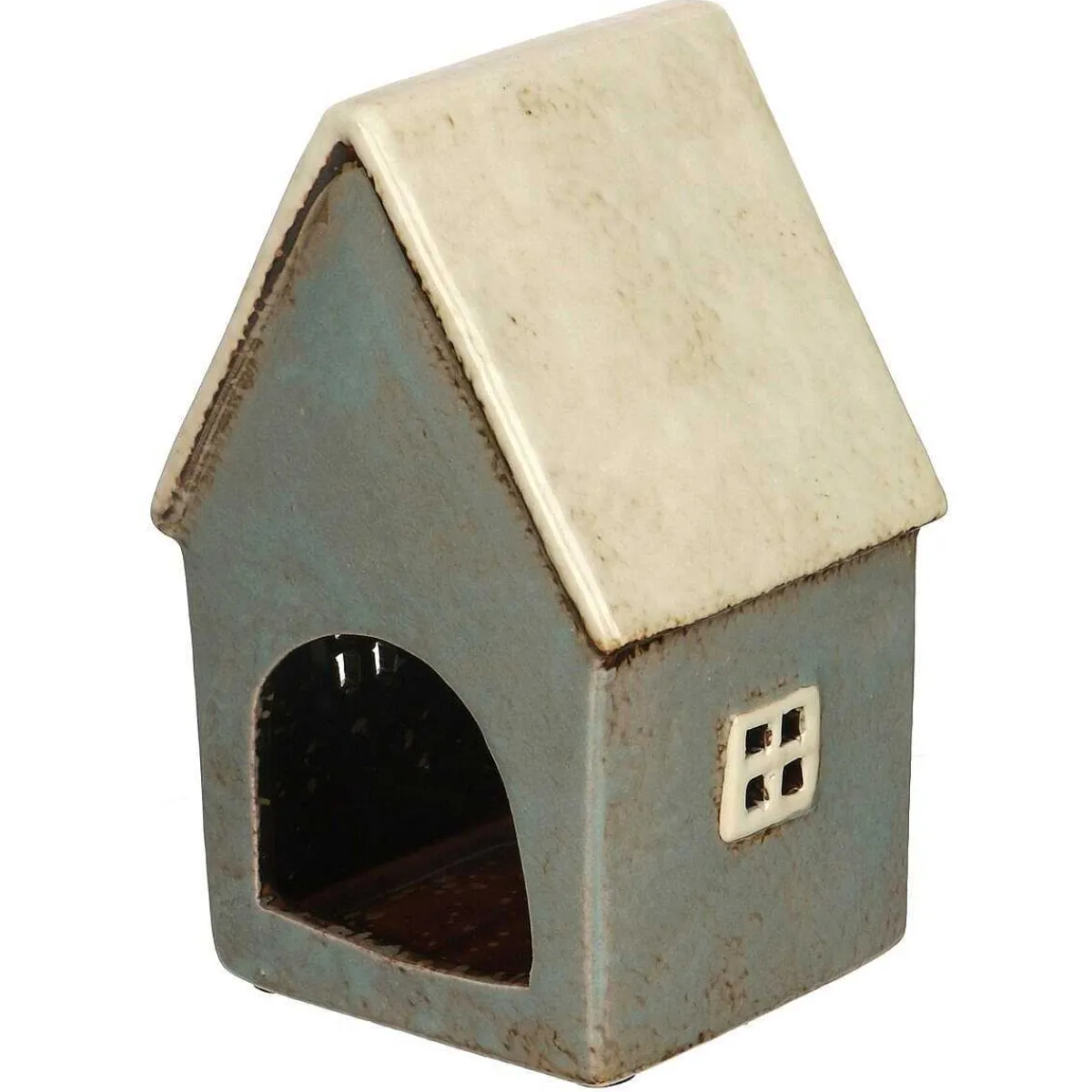 Featuring A Rustic House With A Dark Grey And Cream Glaze, This Dainty Tealight Will Look Lovely When Displayed On A Shelf Or Windowsill. Place A Tealight Of Your Choice Inside The Rear Of The House And Watch Glow From The Flame Light Up Behind The Windows Of The House.
