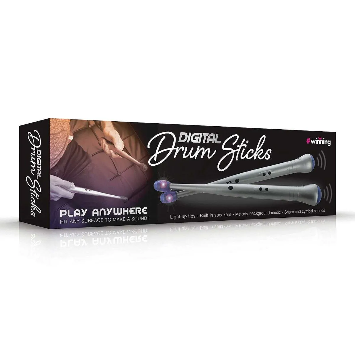 With Impact Sensitive Led Tips That Light Up When You Tap Them, These Awesome Digital Drumsticks Have Built In Speakers That Play Snare And Symbol Sounds When You Hit Any Surface. Simply Press The Melody Button And The Speakers Will Play Background Music For You To Drum Along To!