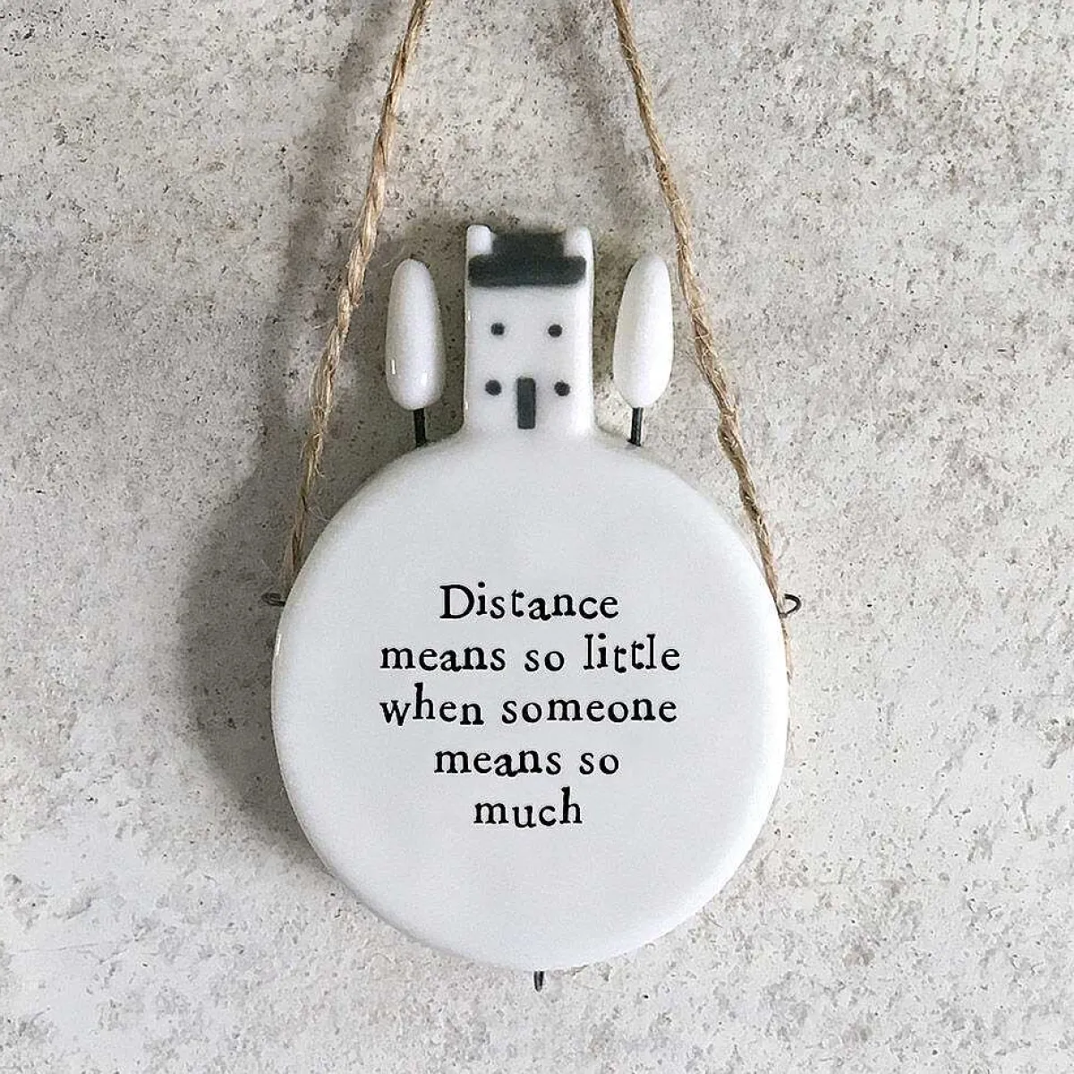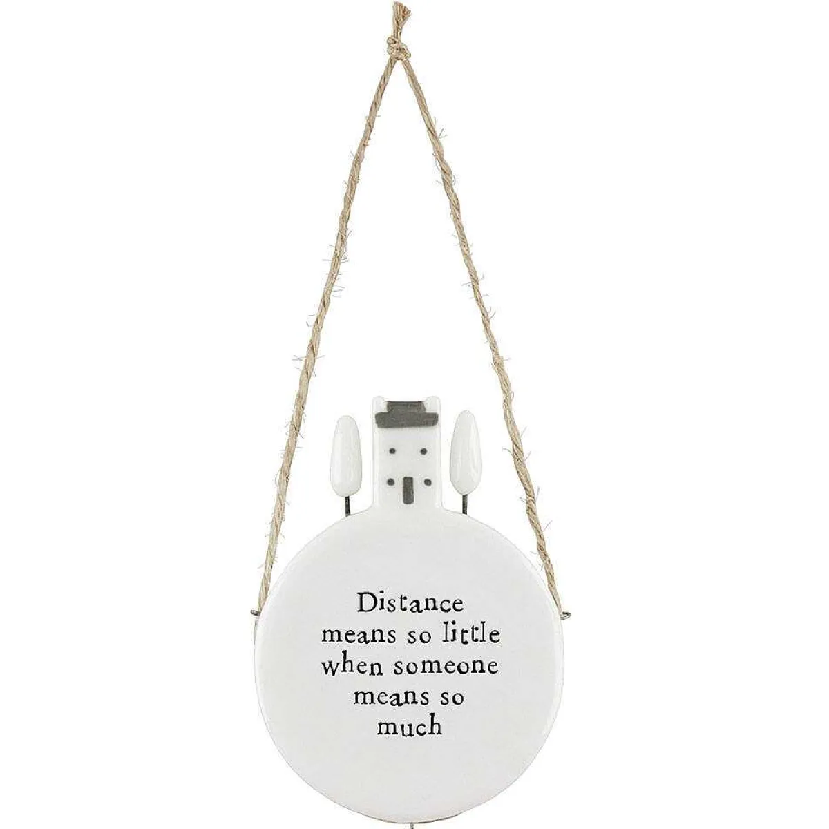 East Of India ‘Distance Means So Little’ Circle Porcelain Hanger