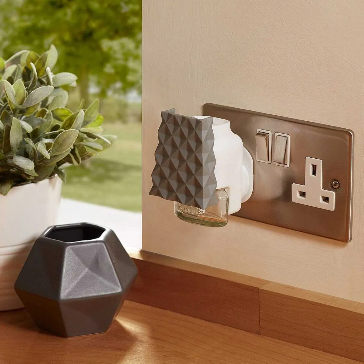This Design In ‘Faceted’ Is A Matte Grey Colour With Geometric Debossed Triangles Meaning That Your Scent Plug Blends In And Compliments Any Room Décor! So You Can Put It Anywhere In Any Room You Choose, Be It The Bedroom, Bathroom Or Living Room.