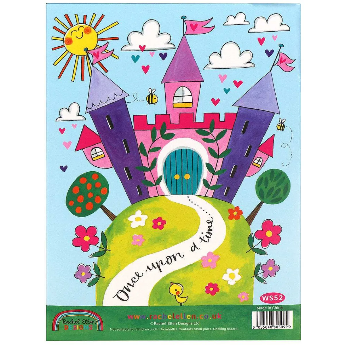 Each Sheet Of Writing Paper Is Pale Blue, And Across The Bottom Is A Colourful Illustration Of The Princess In Her Carriage With Unicorn, Along With The Fairy Tale Castle. Whilst The Envelope Features The Fairy Tale Princess In Her Carriage With Unicorn, And A Rainbow In The Opposite Corner With Space In The Middle For You To Write The Address. The Front Of The Writing Set Features A Princess With Long Flowing Hair, In A Pink Carriage With A Unicorn, Each One With A Cute And Adorable Character. The Characters Are Surrounded By Hearts, Flowers And A Rainbow, With Bees And Birds Which Add Interest To The Playful Design. The Slogan On The Front Reads ‘Fairy Tale Princess’ And A Rainbow With Clouds At Each End, Which Reads ‘Writing Set’. On The Reverse Of The Pack The Design Continues With The Same Theme.
