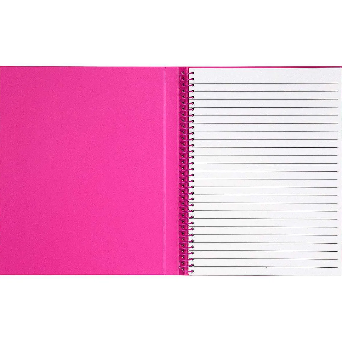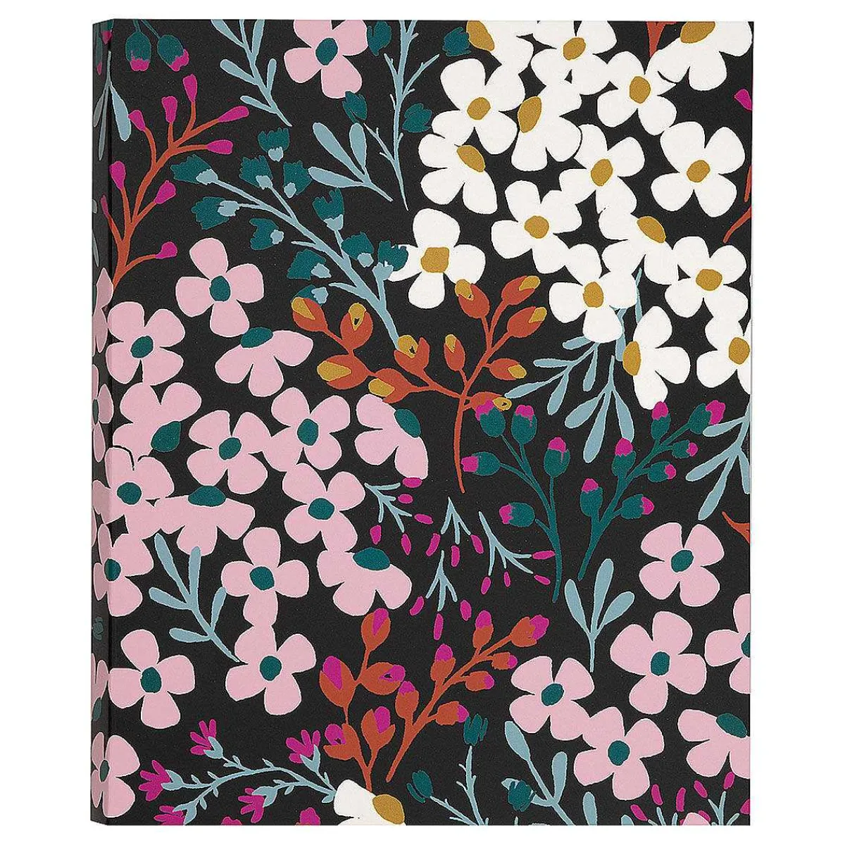 This Notebook Is Adorned With The ‘Fall Floral’ Design Which Features White Daisies And An Array Of Sprigs Of Beautiful Flowers, In A Black, Green And Orange Colour Scheme. The Interior Is Hot Pink In Colour Whilst The Spine Of The Notebook Is Spiral Bound, Made Of Pink Wire And Semi-Concealed Within The Cover.