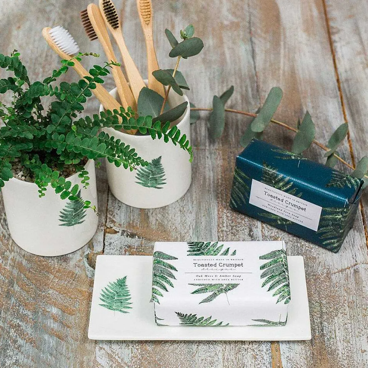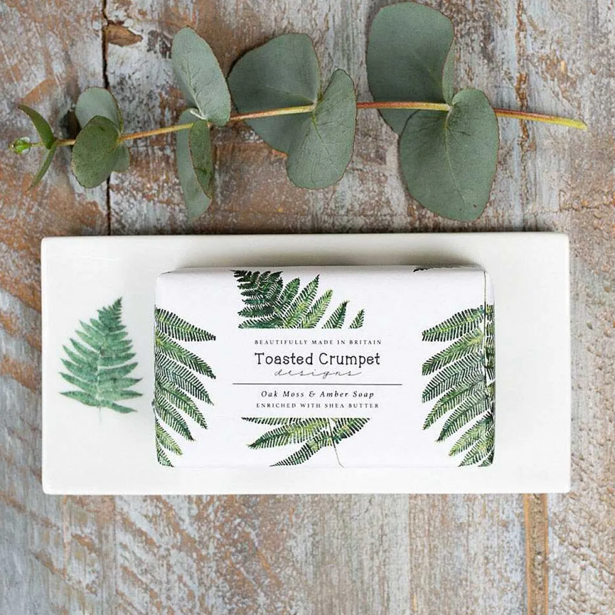 The Lefthand Side Of The Soap Dish Features A Dainty Watercolour Illustration Of A Lush Green Fern Leaf That Stands Out Beautifully Against A Crisp White Background. The Superb Print Quality Captures The Fine Detail And Vibrant Colours Of Each Hand-Drawn Design.