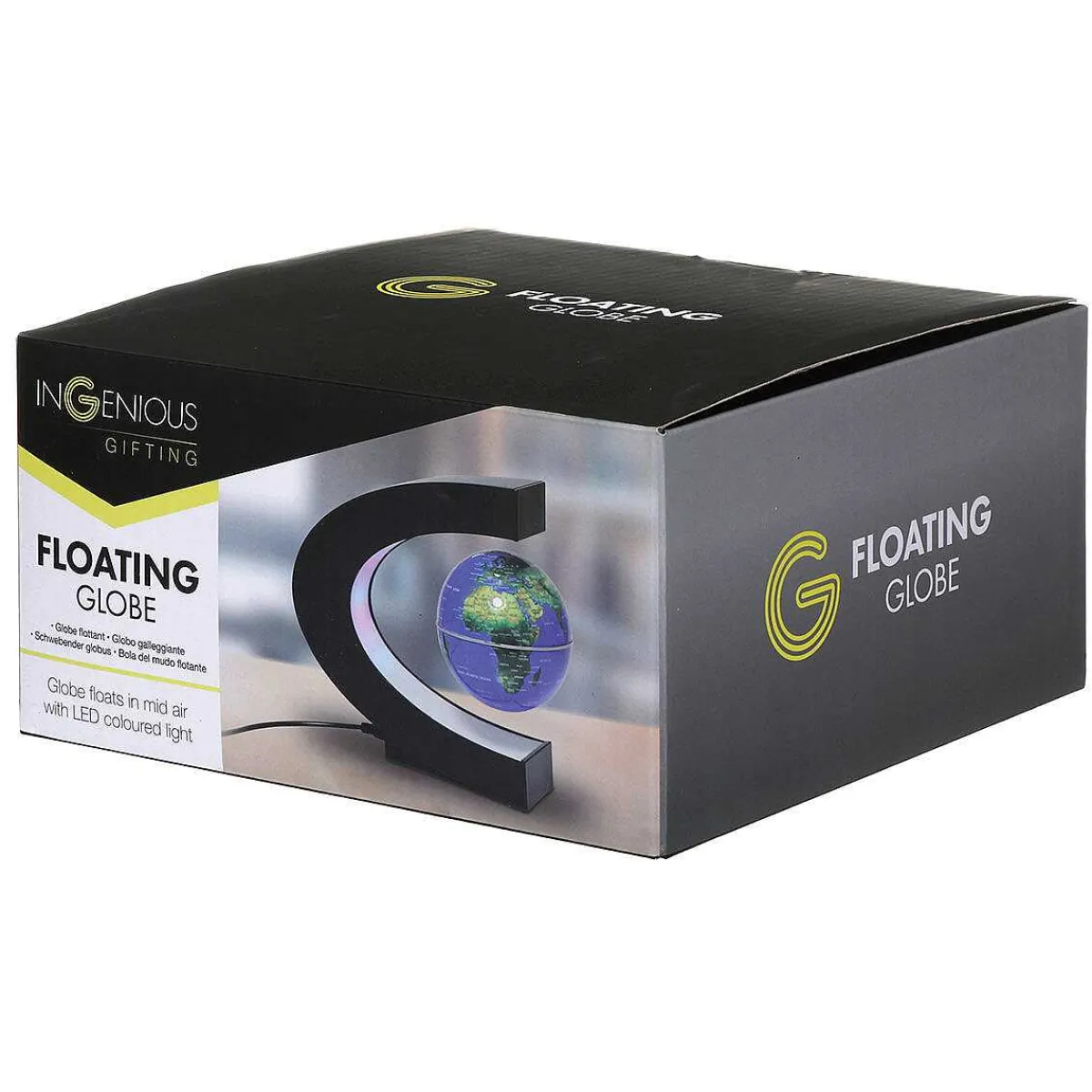 This Mesmerising Globe Rotates In Mid-Air While The Cradle Displays A Cool Mix Of Bright Led Colours. Demonstrating The Extraordinary Power Of Magnets! Using The Auxiliary Tool Provided Gently Place The Globe In The Centre Of The Frame And Slowly Release The Tool And Then Your Hand And Watch As It Stays Floating In The Air. Give The Globe A Gentle Push And It Will Rotate In Mid-Air.