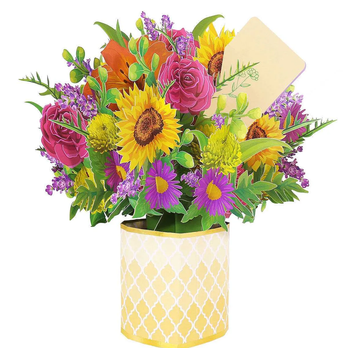 Flobouquet Are Flower Vases Of Various Patterns. Perfectly Flat, They Open Simply By Pushing On The Base, Guaranteeing An Amazing “Wow Effect!”. An Incredible Feat Of Paper Engineering, This Gorgeous 3D Card Looks Fabulous From Every Angle. It Features Layers Of Beautiful, Blooming Flowers That Are Captured In Exquisite Detail, Framed, Sitting Inside A Decorative Pot Base.