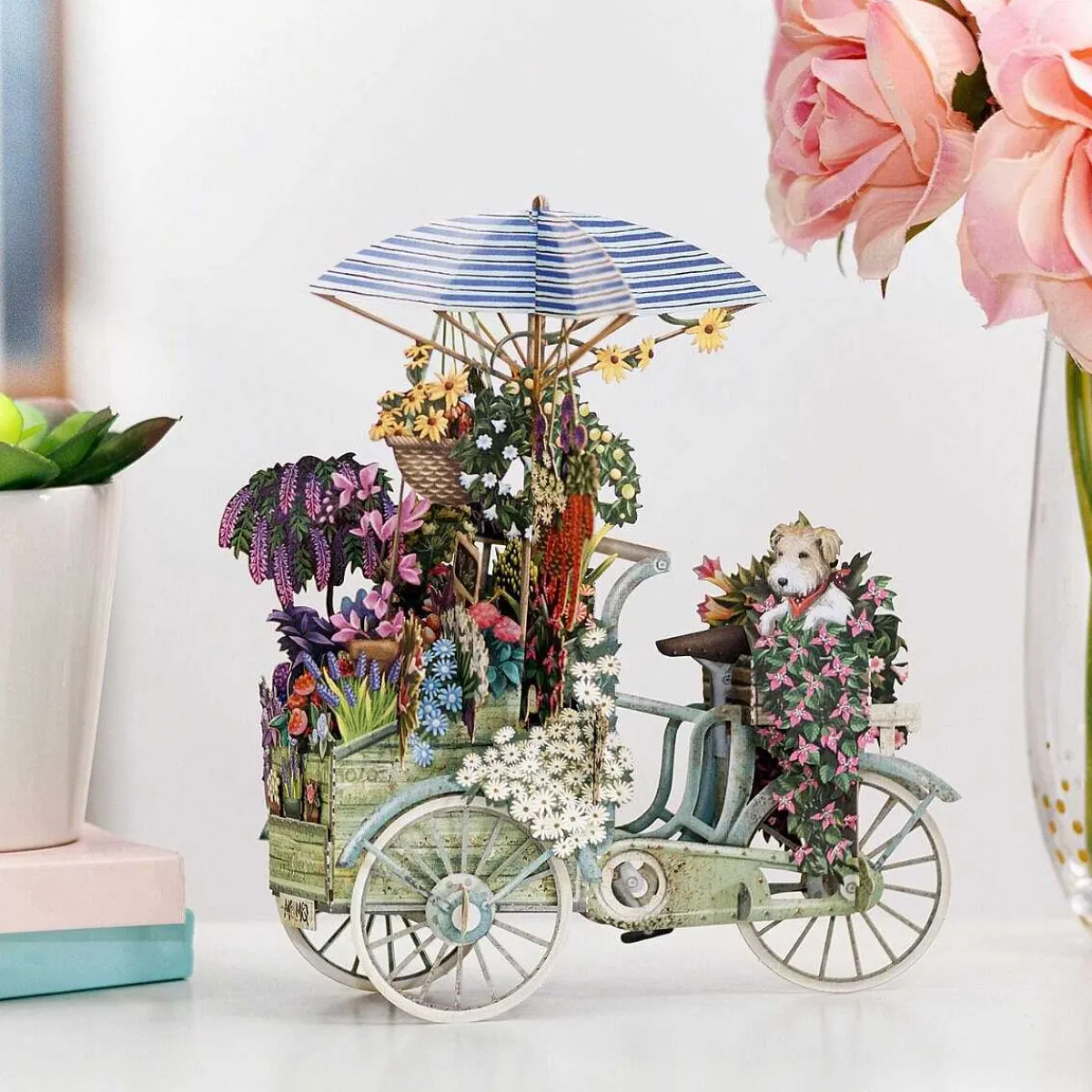 “Flower Seller’S Bike” Blue 3D Birthday Card