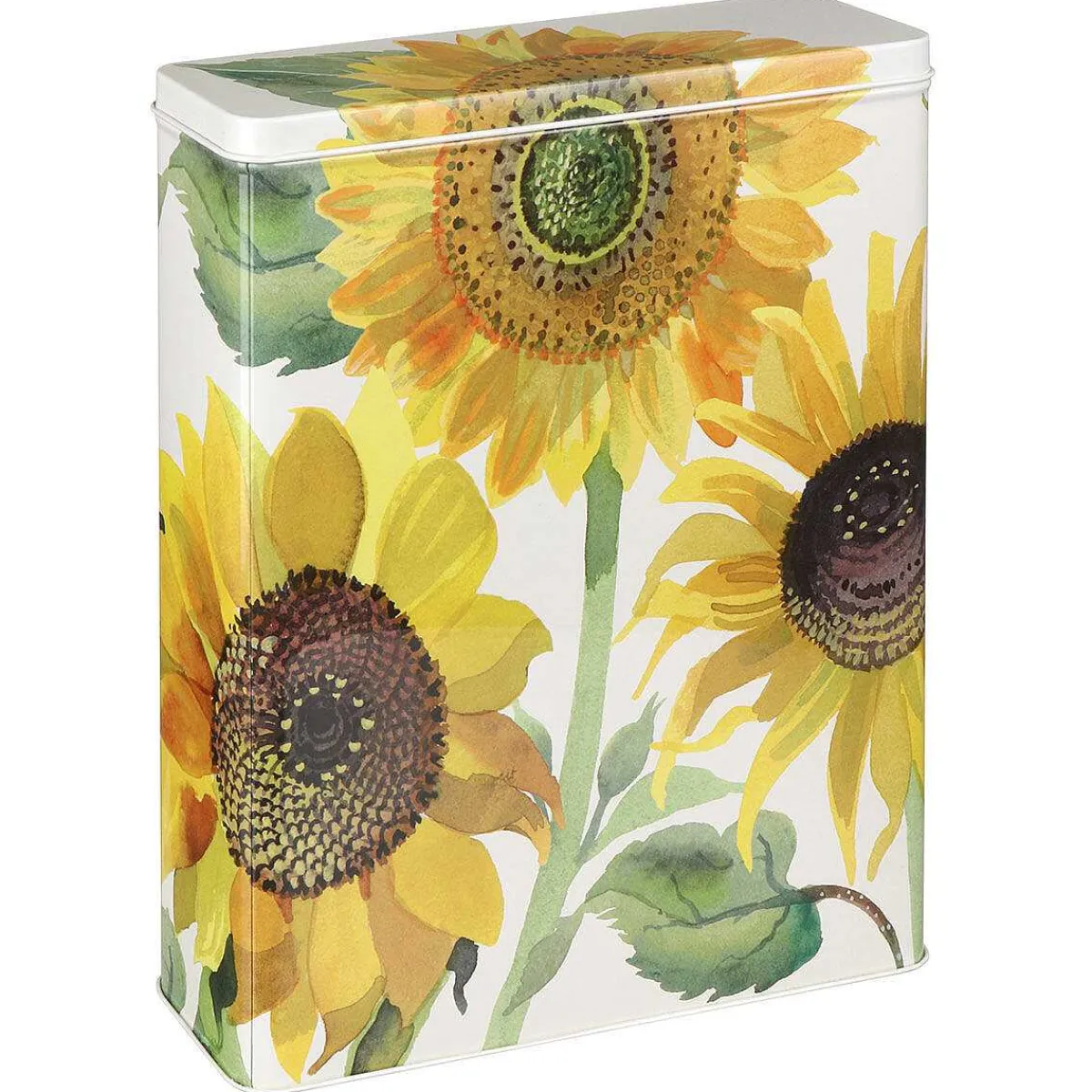 This Summery Illustration Depicts Magnificent Sunflowers With Gorgeous Details, Complete With Distinctive Large Centres, Multiple Petals Along With Green Leaves And Sepal. The Design Continues On The Lid With Part Of A Sunflower Displayed. These Colourful Flowers Are Set Upon A Crisp Cream Background Making The Tin Suit Any Style Kitchen.