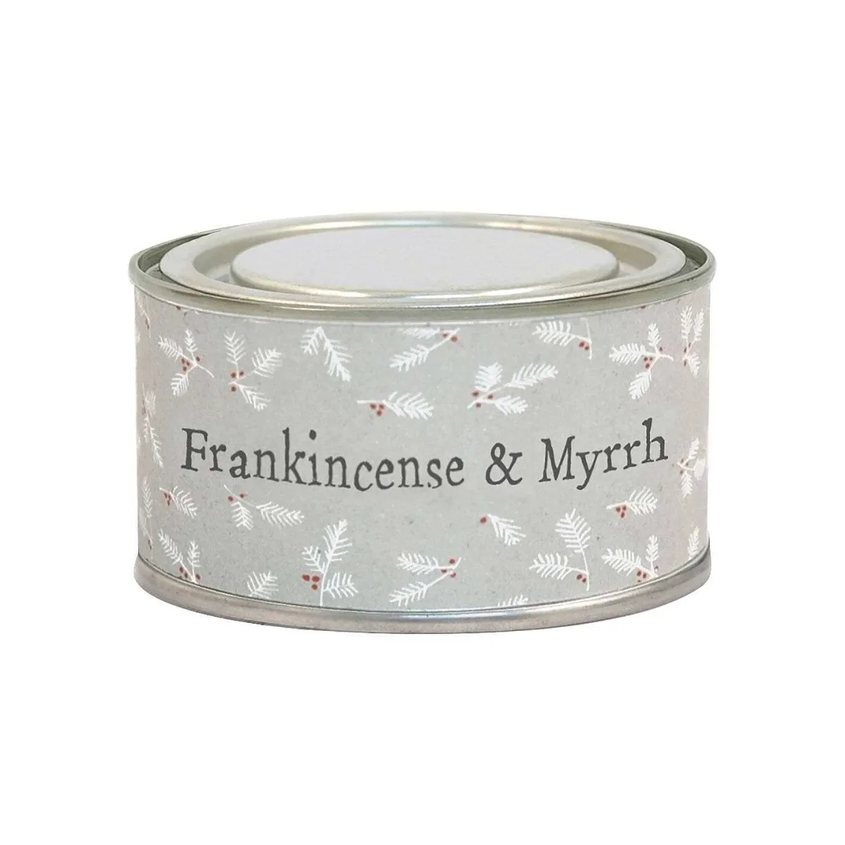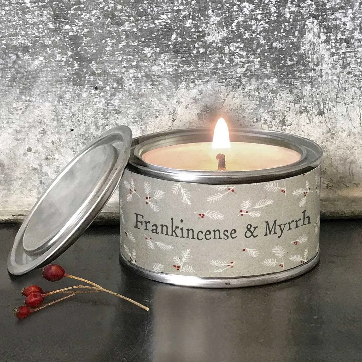 Presented In A Metal Tin, This Candle Emits The Warm Scent Of Frankincense And Myrhh To Fill Your Home With The Christmas Spirit And Impress All Of Your Guests. The Candle Is Decorated With Illustrations Of Red Berries And White Leaves Which Surround The Words ‘Frankincense & Myrrh’.