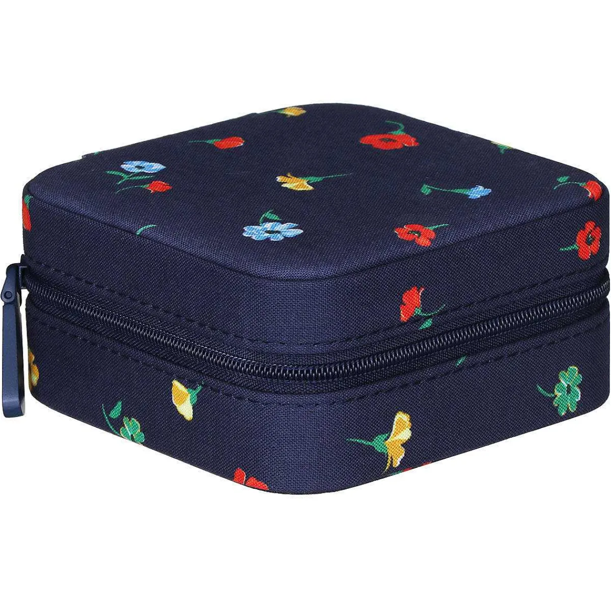 Adorned With The ’Garden Toss’ Theme, This Jewellery Organiser Features Sporadically Placed Flowers, In A Yellow, Blue, Green And Red Colour Scheme. This Is All Set Against A Sleek Navy Background Which Provides A Beautiful Contrast.