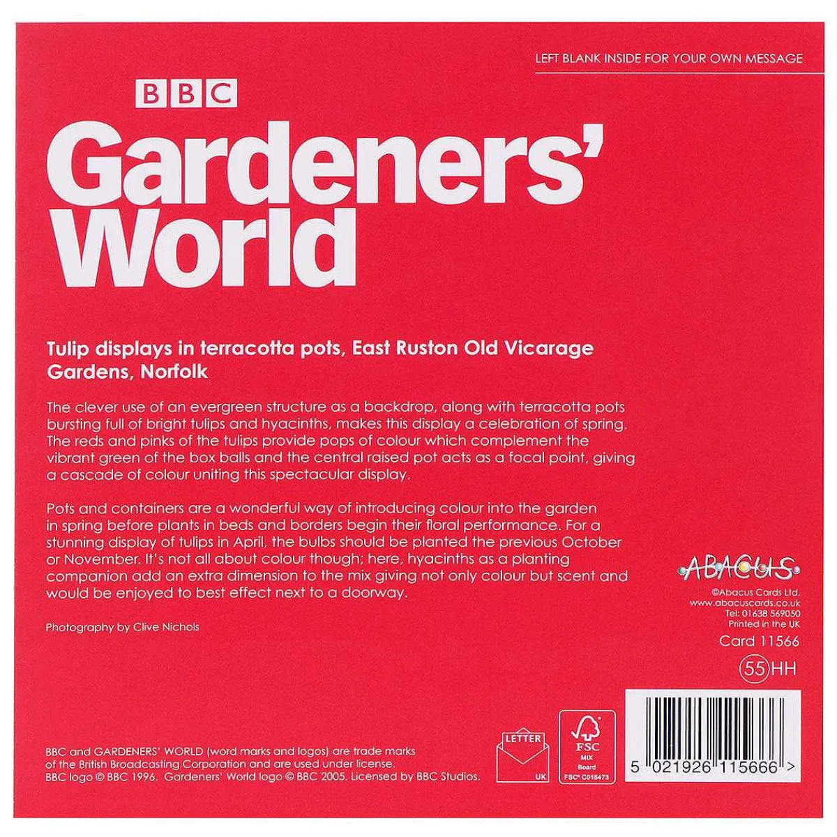 Abacus Cards Is One Of The Leading Greeting Card Publishers In The Uk. Priding Themselves On An Imaginative And Diverse Range Of Cards Made To A High Standard. They Started In 1991 As Mr Fothergill Seeds And Purchasing Art-Led Greetings Card Publisher Clare Maddicott Publications. Abacus Cards Have An Extensive Portfolio Of Over 1000 Designs Thanks To A Team Of Creative’S In House And Freelance, Photographers And Illustrators Catering For Every Occasion. Including Ranges For Bbc Programmes; Country File, Gardeners World And Springwatch.