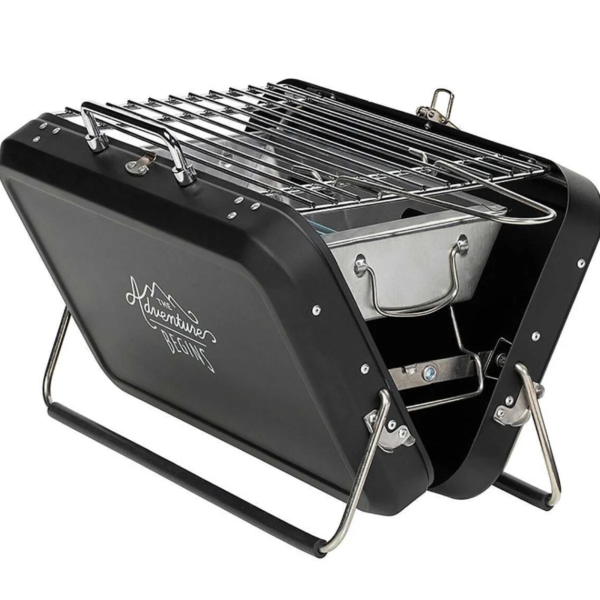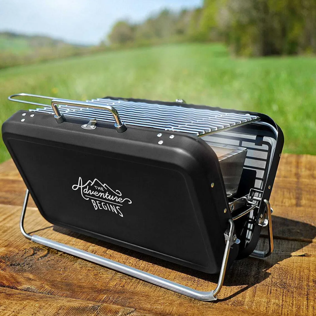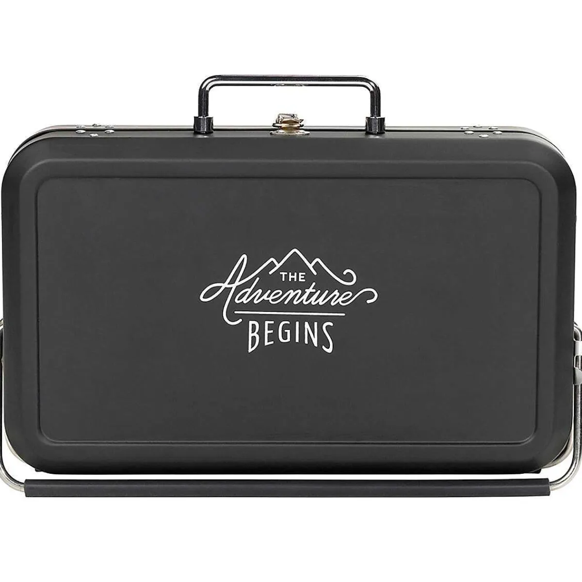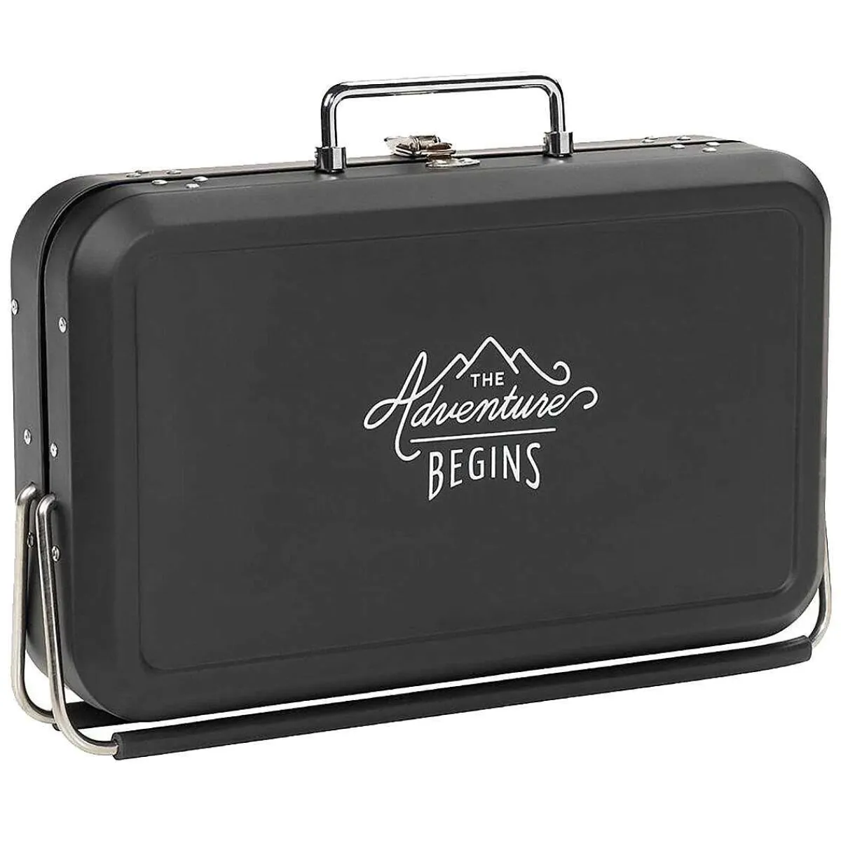 The Entire Bbq Fits Into What Appears To Be A Small Suitcase, Given Away Only By The Text ‘The Adventure Begins’ Which Is Emblazoned On The Side. All That Is Required Is To Add The Coal, And, Of Course, The Meat!