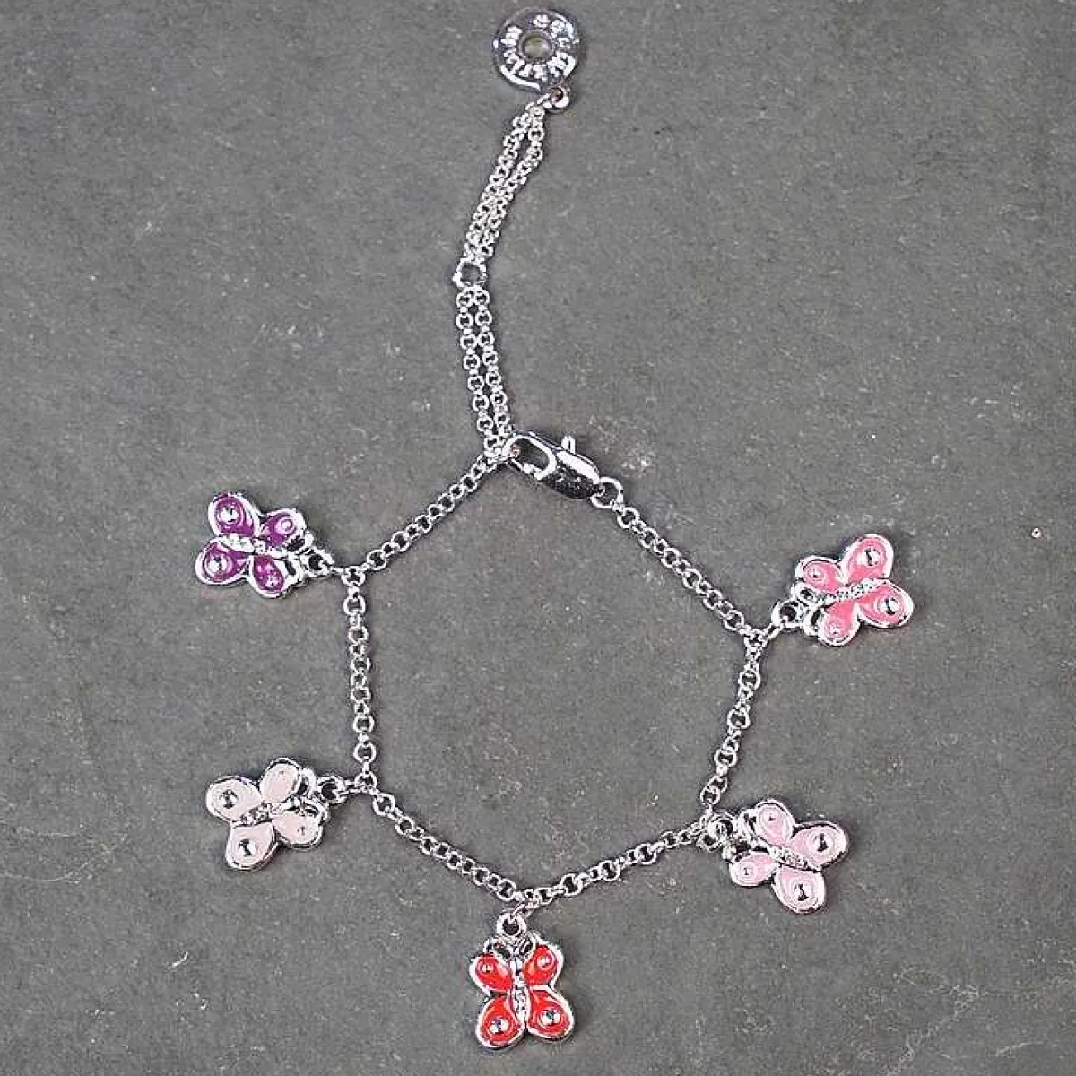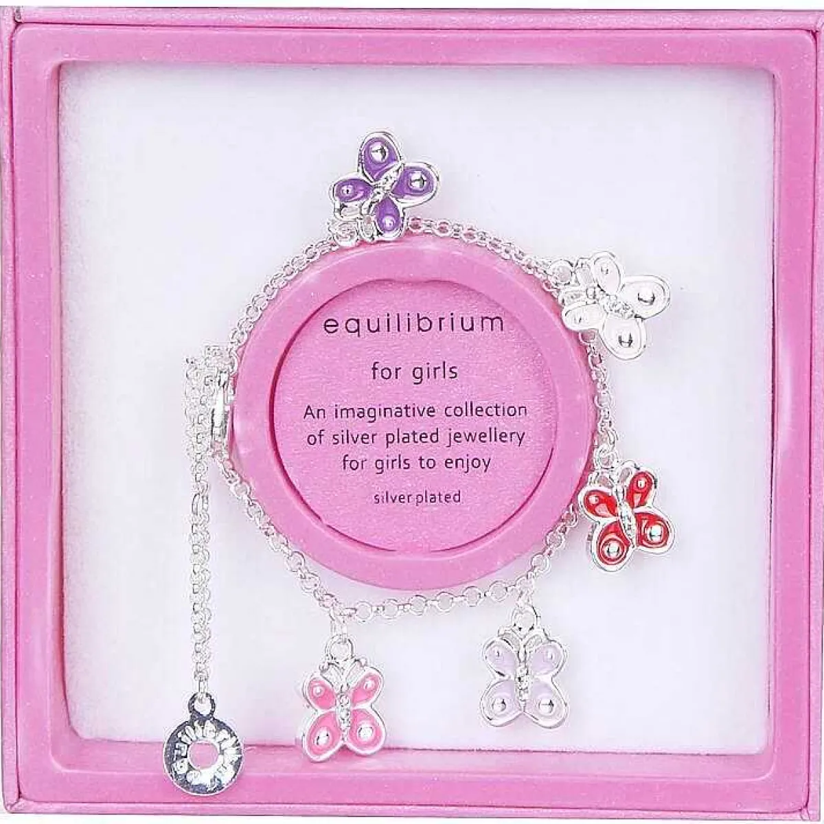 This Colourful And Vibrant Charm Bracelet Showcases A Shimmering Silver Link Chain Surrounded By A Coloured Array Of Multiple Butterflies In Such Colours As Pink, Blue, Red And Purple. The Charm Bracelet Is Touchingly Finished Off With A Hanging Equilibrium Silver Token And An Easy Access Metal Clasp To Fit The Bracelet With.