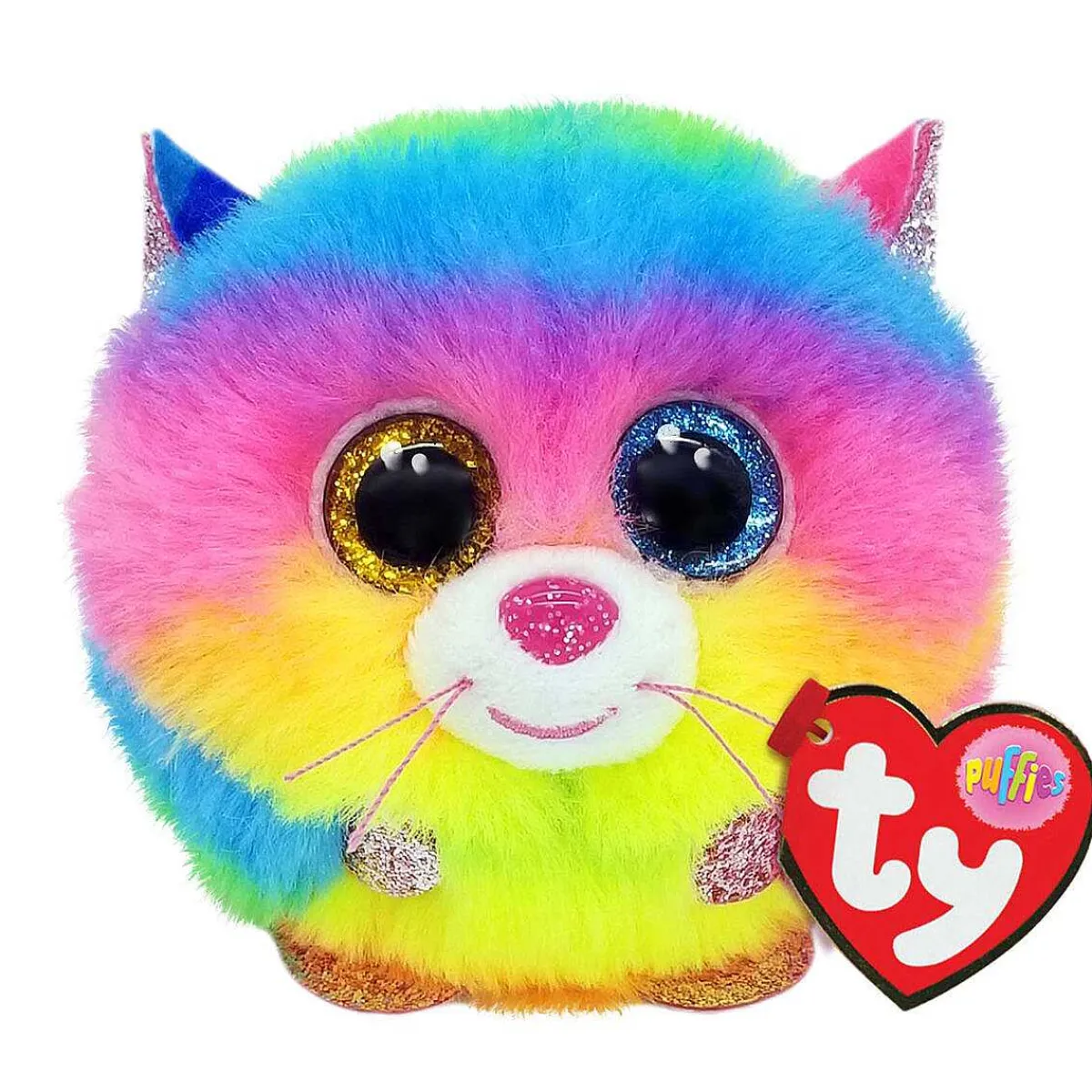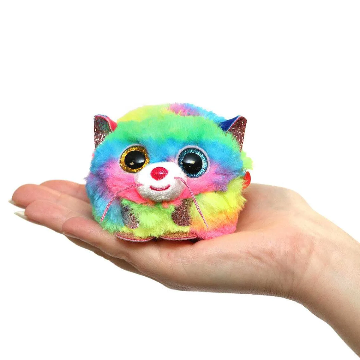 Gizmo Is A Cat With A Bright Rainbow Design Which Features Colours Such As Green, Blue, Pink And Yellow. One Of Her Eyes Is A Glittery Blue And The Other A Glittery Gold Which Makes Her A Perfect Companion. Gizmo Is Sure To Make The Cuddliest Of Friends Perfect For Lounging Around The House.