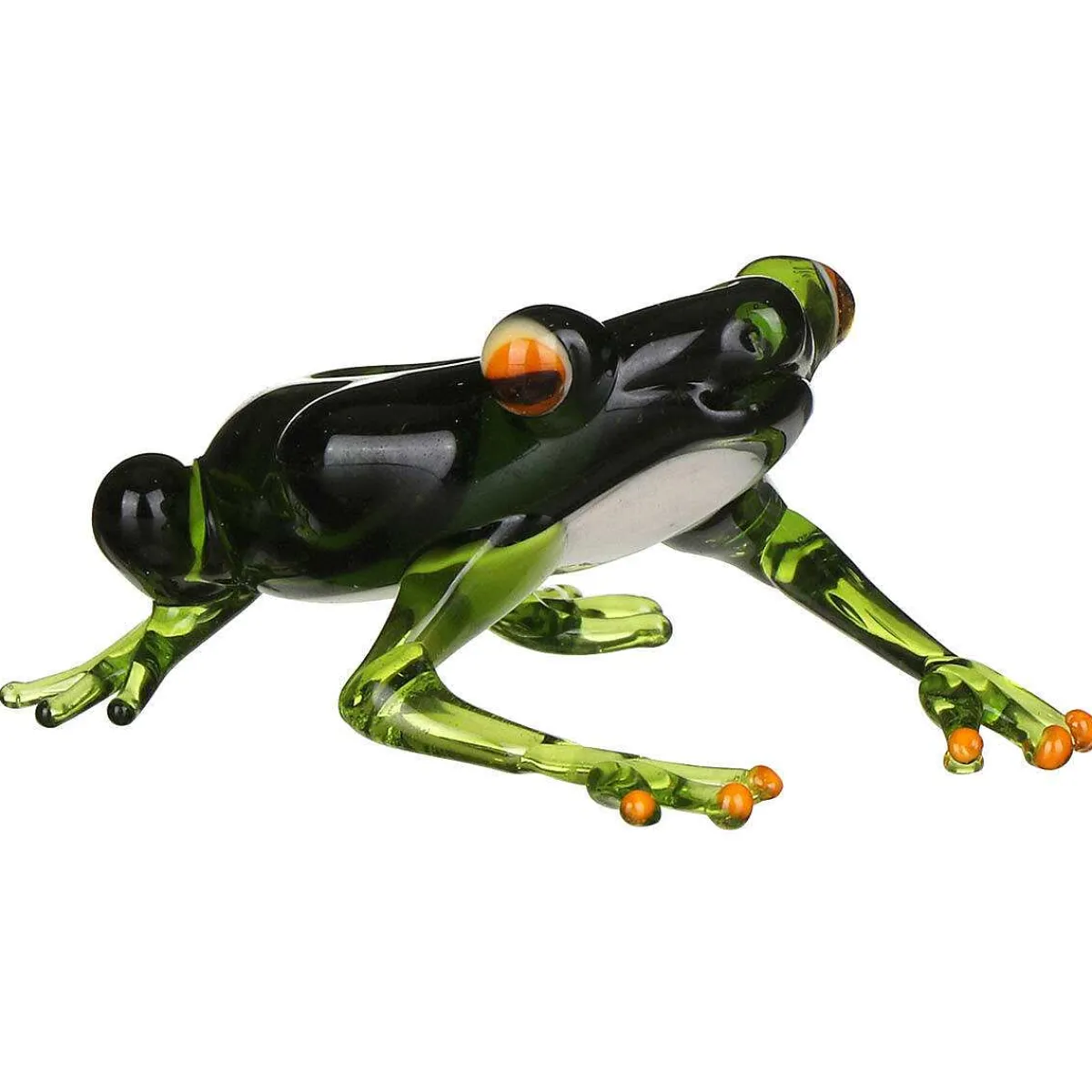 This Stunning Little Animal Is Made Of Coloured Glass Which Catches The Light And Sparkles With Life. The Green Frog Is On All Fours With His Head In The Air. His Body Is A Dark Green Colour Whilst His Legs Are A Lighter Green, He Is Complete With Glass Yellow Eyes.