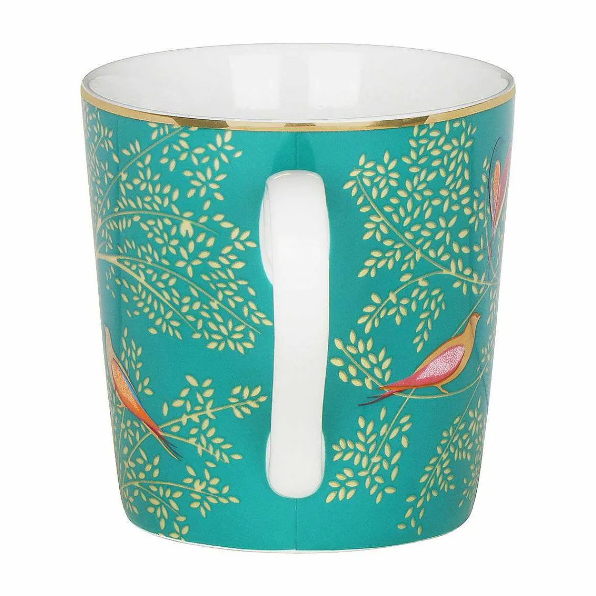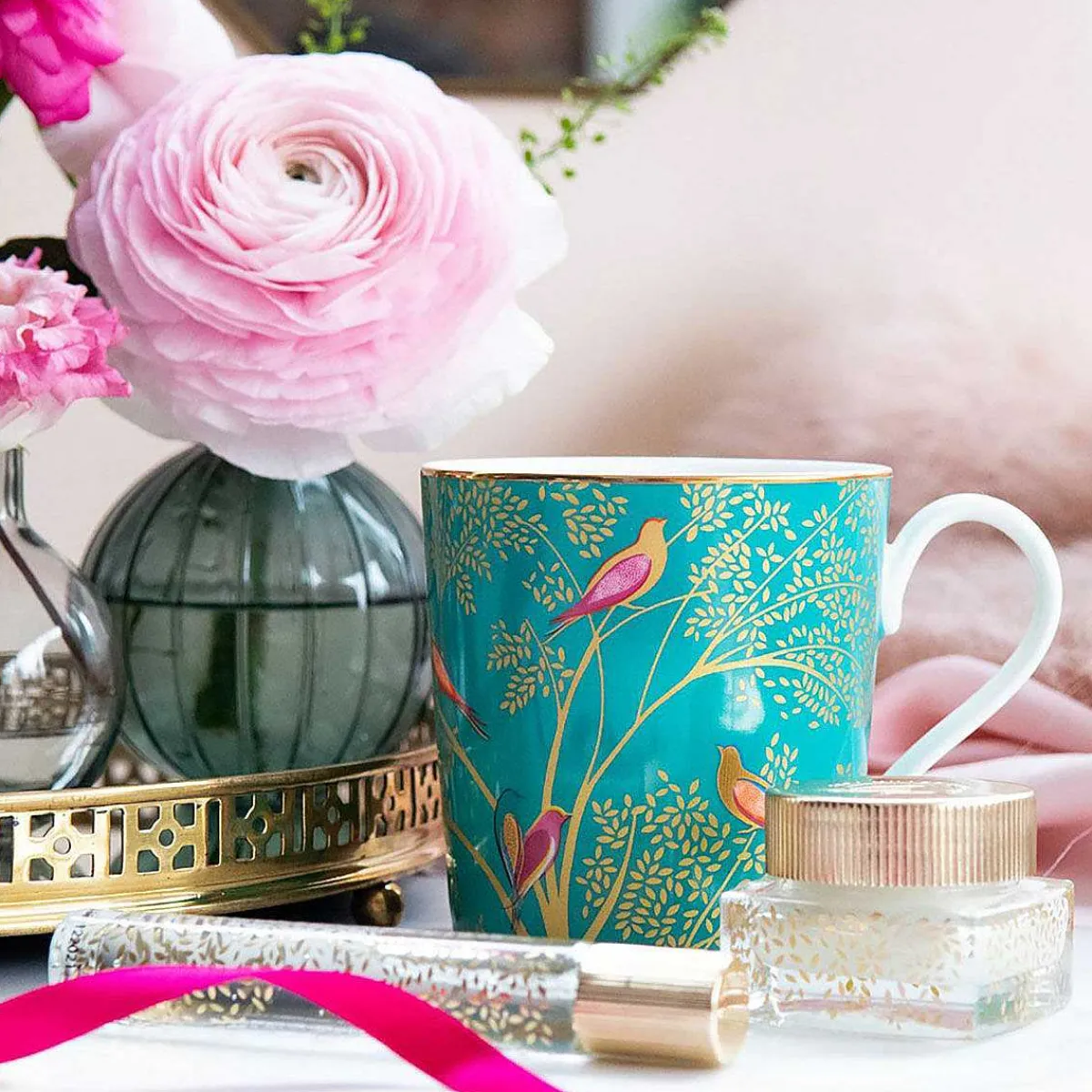 Set Against A Deep Turquoise Background, A Number Of Multi-Coloured Birds Are Perched Amongst Golden Branches Which Are Laden With Leaves. The Handle And The Inside Wall Of The Mug Are Left Blank Which Provides A Nice Contrast To The Bold Print. The Gold Trim Around The Top Of The Mug And Some Of The Birds Are Embellished With 22 Carat Gold Leaf For A Decadent And Stylish Finish.