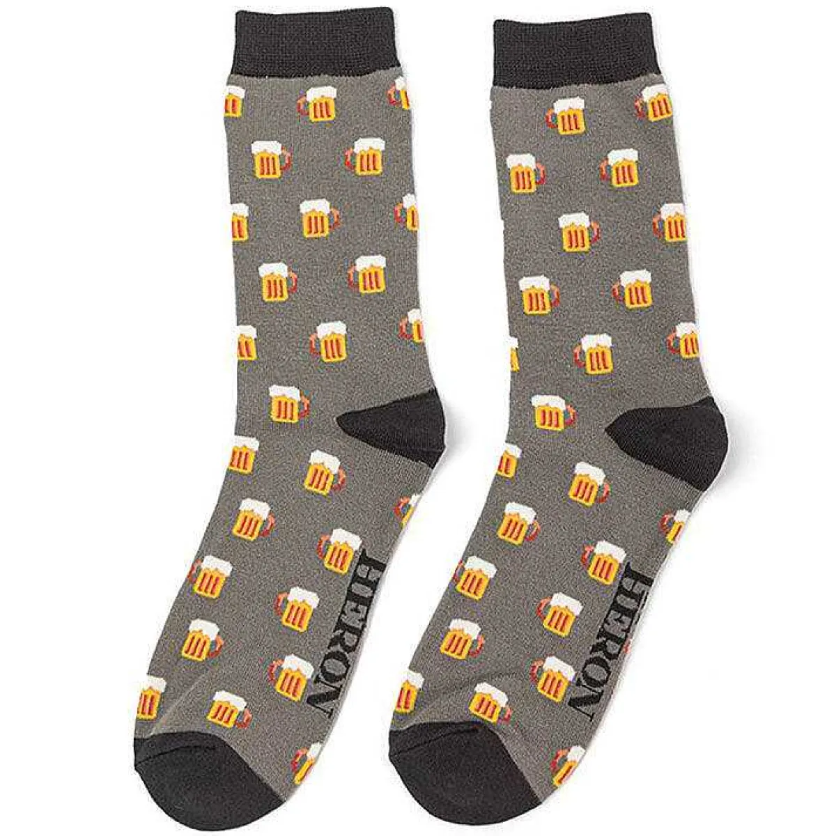 Designed In Britain, These Fabulously Fun Socks Are Patterned With Little Yellow Beer Tankards With Frothy White Tops, Contrasting Against A Slate-Grey Background With A Tasteful Black Heel And Trim.