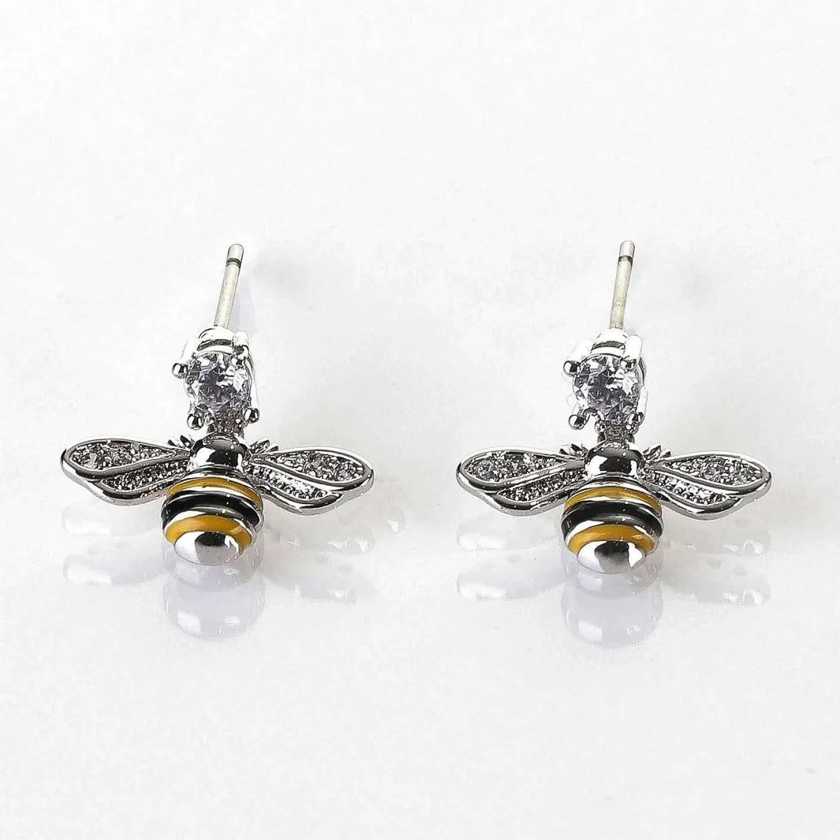 Designed To Hang From A Round, Diamante Stud, Each Earring Features A Bee Shaped Charm With Black And Yellow Stripes And Pavé Set Crystals Within Its Wings.