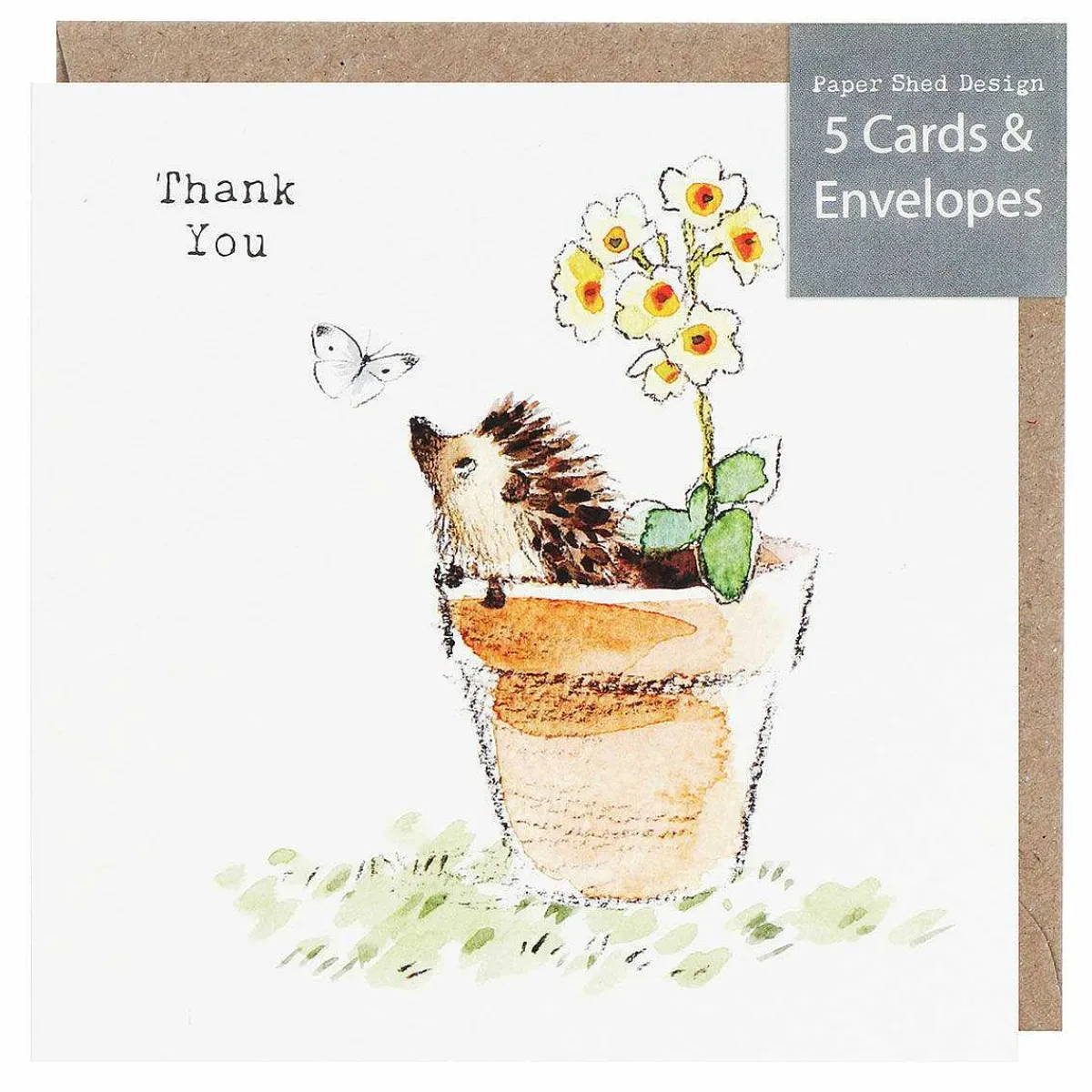 Paper Shed Designs Hedgehog In Flower Pot ‘Thank You’ Pack Of 5 Notecards