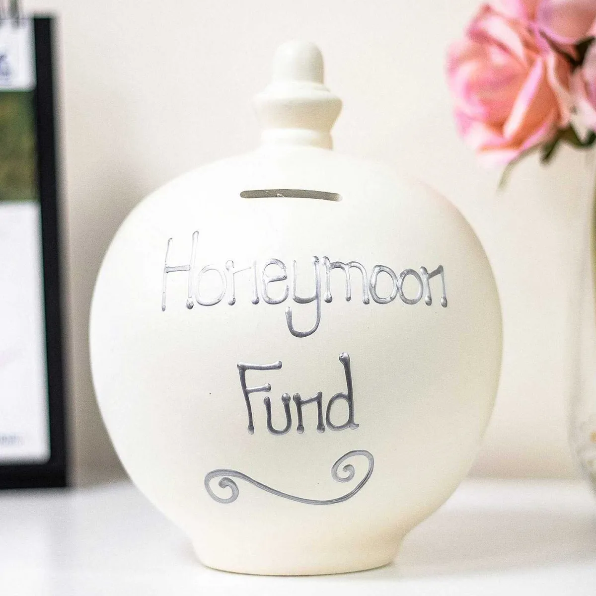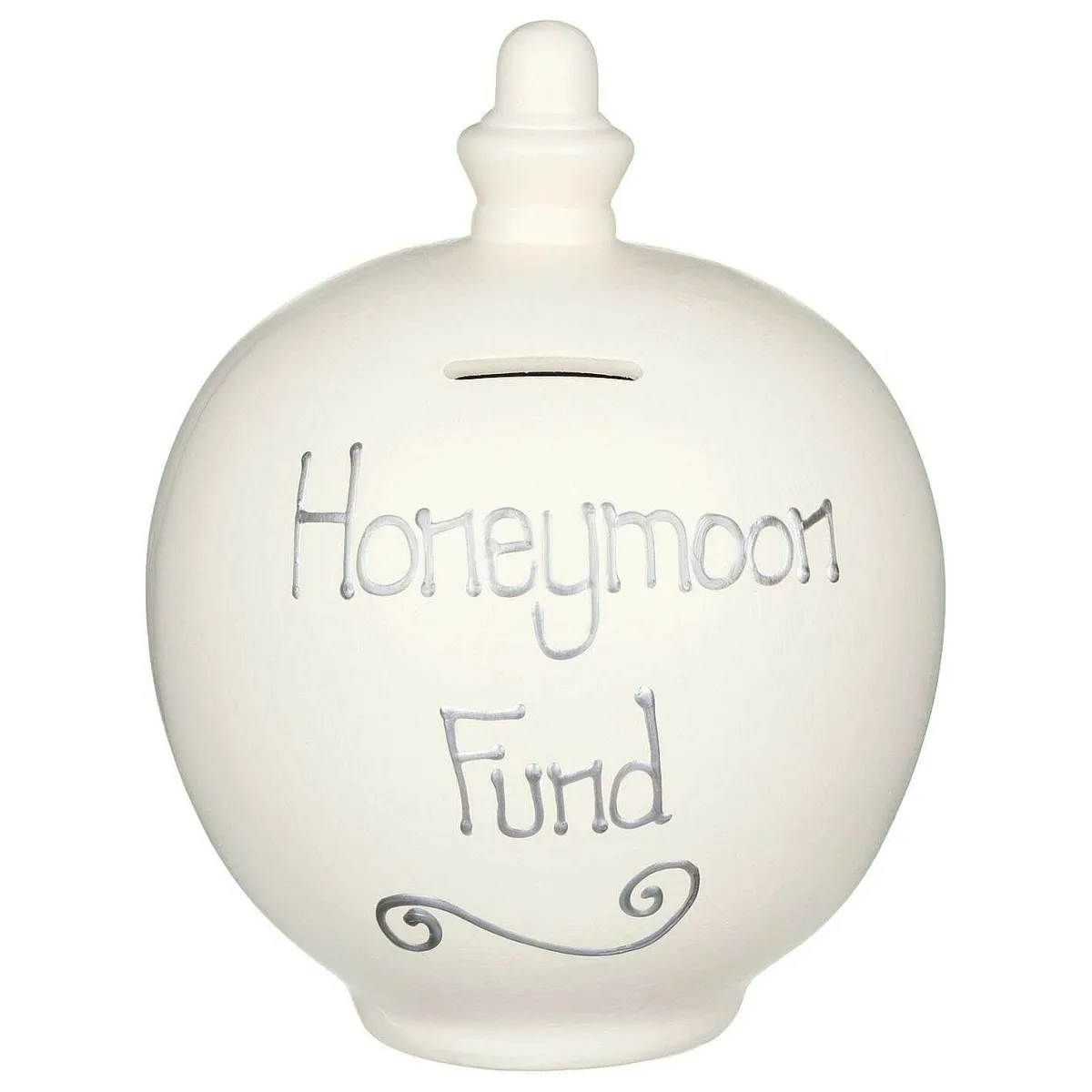 Temptation ‘Honeymoon Fund’ Silver On Cream Money Pot