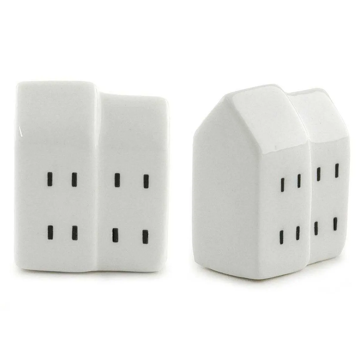Made From Cream Ceramic, The Ornament Is Shaped Like Two Little Semi-Detached Houses, One Slightly Bigger Than The Other And Each With Four Little Black Windows.