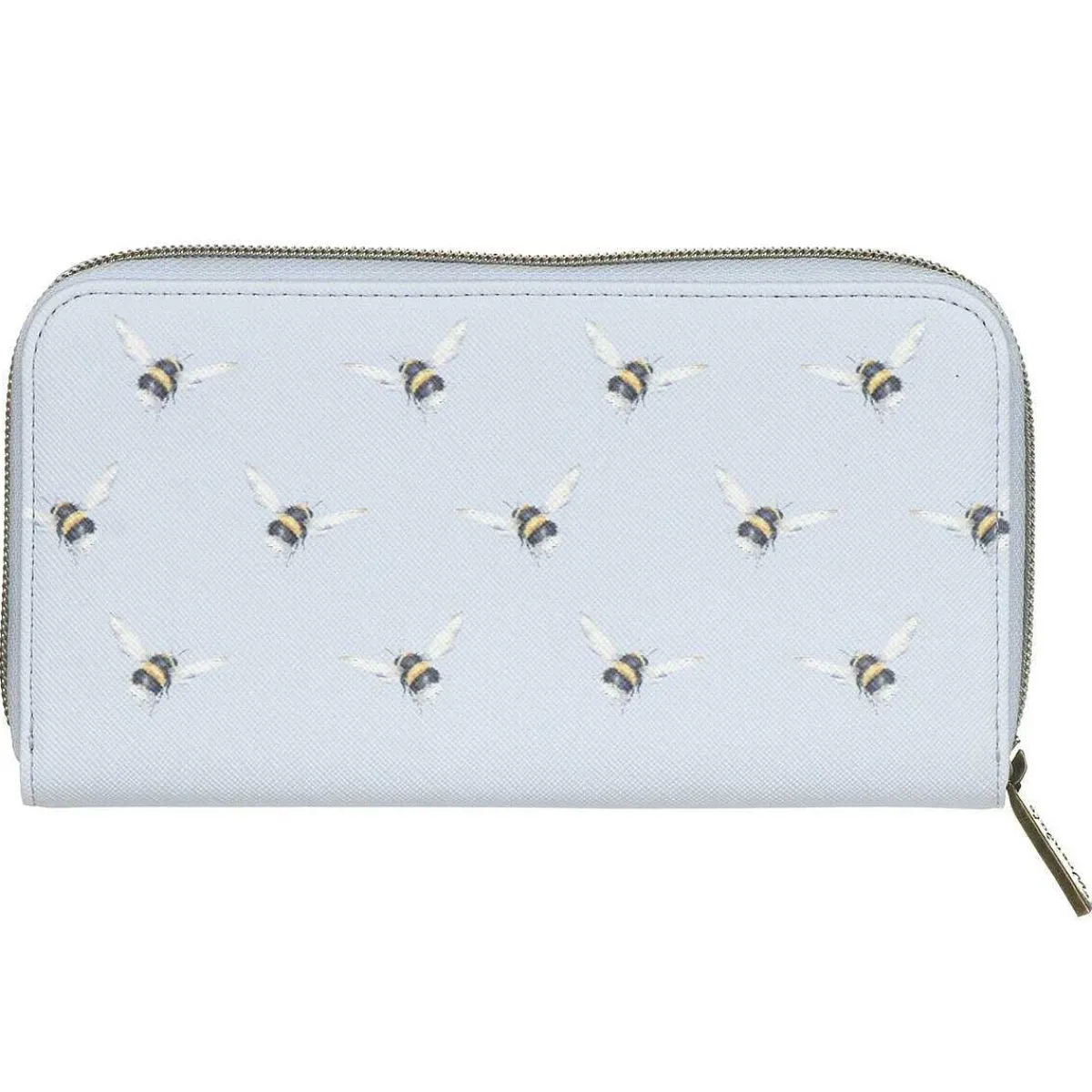 This Durable Purse Is Made From Faux Leather And Is A Beautiful Baby Blue Colour. It Features An External Metal Zip With A Zip Pull That Matches The Main Body And Is Accentuated With Bronze Hardware With The Signature Wrendale Designs Branding On The Front. The Concertina Design Of The Purse Opens To Reveal Printed Cotton Lining With A Blue And White Pattern And Has 8 Card Slots, A Zipped Coin Section And Space For Notes.