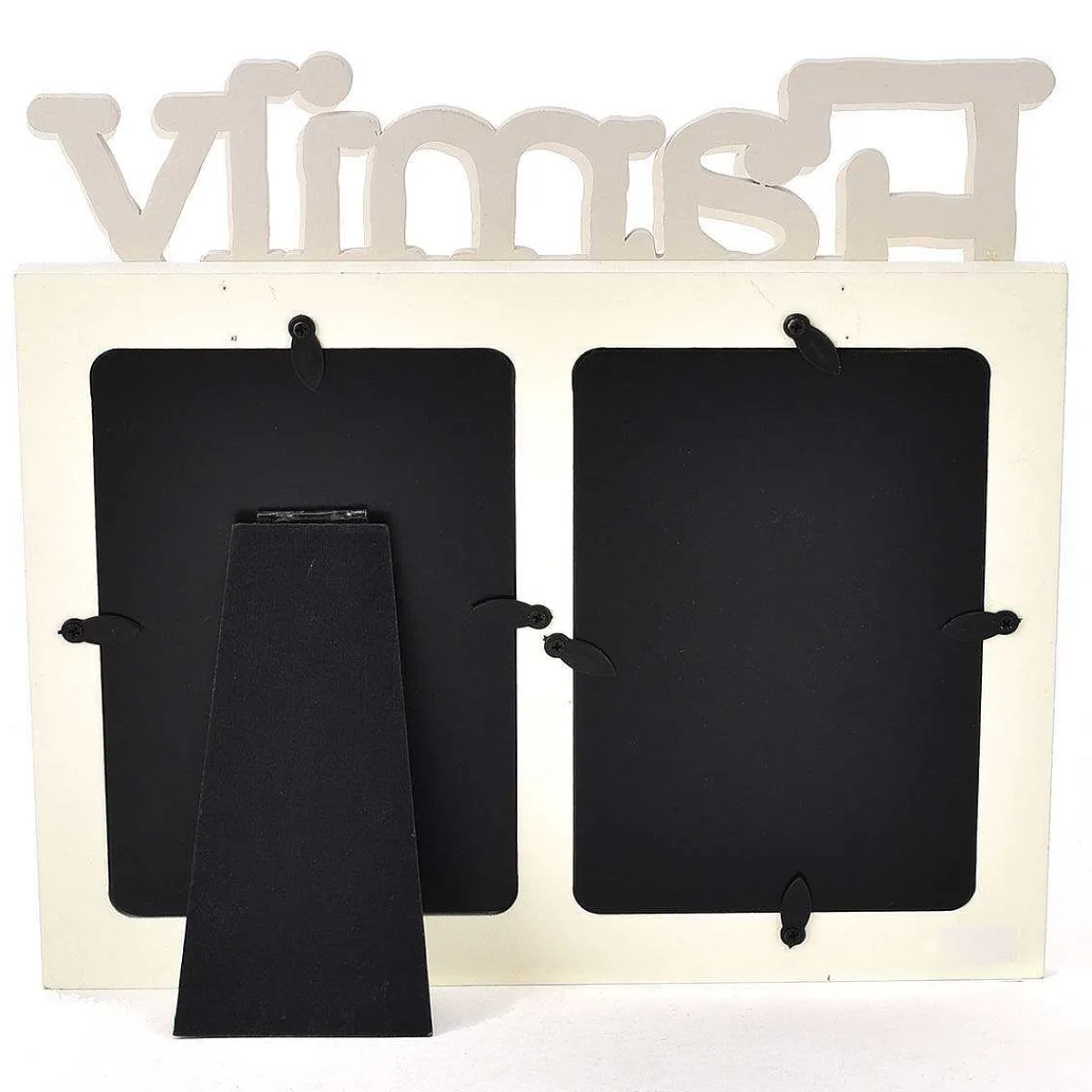 The Cream-Coloured, Wooden Frame Holds Two 6 X 4 Portrait Photographs Which Sits In The Middle Of The Frame. The Word ‘Family’ Sits On Top Of The Frame Written In Large Grey Wooden Letters. Beneath The Text It Reads ‘Is A Gift That Lasts Forever’. The Frame Is Complete With A Small Pink Heart In The Bottom Corner Which Reads ‘Love You’. The Frame Contains Protective Glass Over The Spaces For Your Images Which Can Be Easily Inserted In The Opening On The Reverse. The Stand On The Back Means You Can Sit It On Any Shelf Or Surface Top.