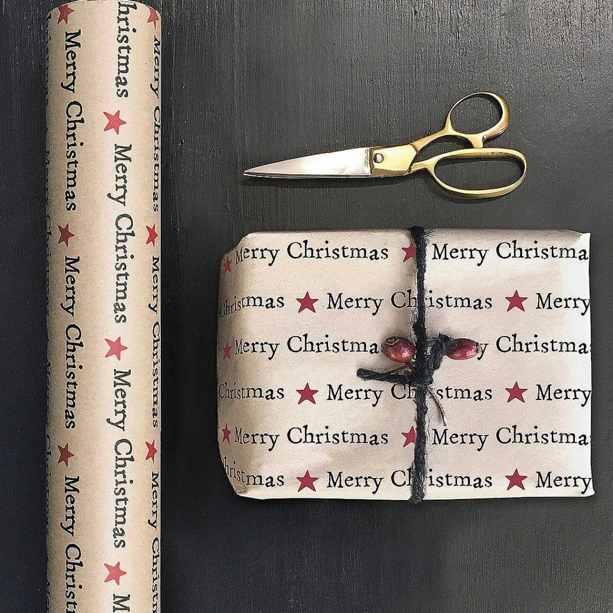 Wrap Your Gifts With Love This Christmas With This Stunning Wrapping Paper From East Of India. Featuring The Text ‘Merry Christmas’ Written Across The Paper With Red Stars Breaking Up The Font, This Eco-Friendly Gift Wrap Is Brown In Colour Which Beautifully Contrasts The Dark Writing.