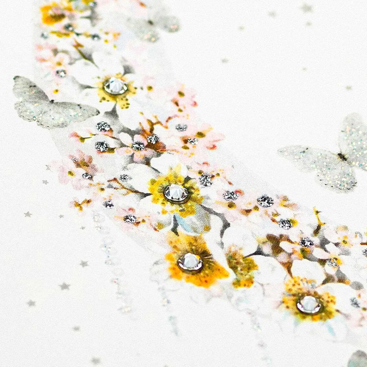 The Front Of This Gorgeous Card Is Decorated With A Crescent Moon Festooned With Pink And White Flowers, Surrounded By Twinkling Stars And Fluttering Butterflies. The Design Has Been Embellished By Hand With Glitter And Diamantes That Shimmer And Sparkle In The Light, With A Message On The Front That Reads;