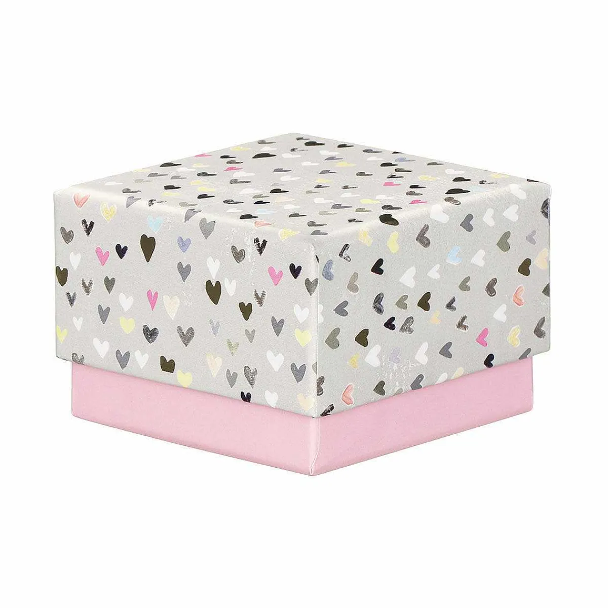 This Mini Hearts Small Gift Box From Glick Is The Perfect Way To Package Little Gifts And Presents For Friends And Loved Ones. The Box Is Designed With Scattered Hearts In Shades Of Pink, Grey, White, Yellow And Some Are Gold Foiled For That Luxurious Touch. This Is All Set Against A Warm Grey Background. Made From Reinforced Card With A Push On Lid To Keep The Contents Secure, The Base Of The Box Is A Contrasting Pink In Colour Whilst The Inside Is Lined In White.