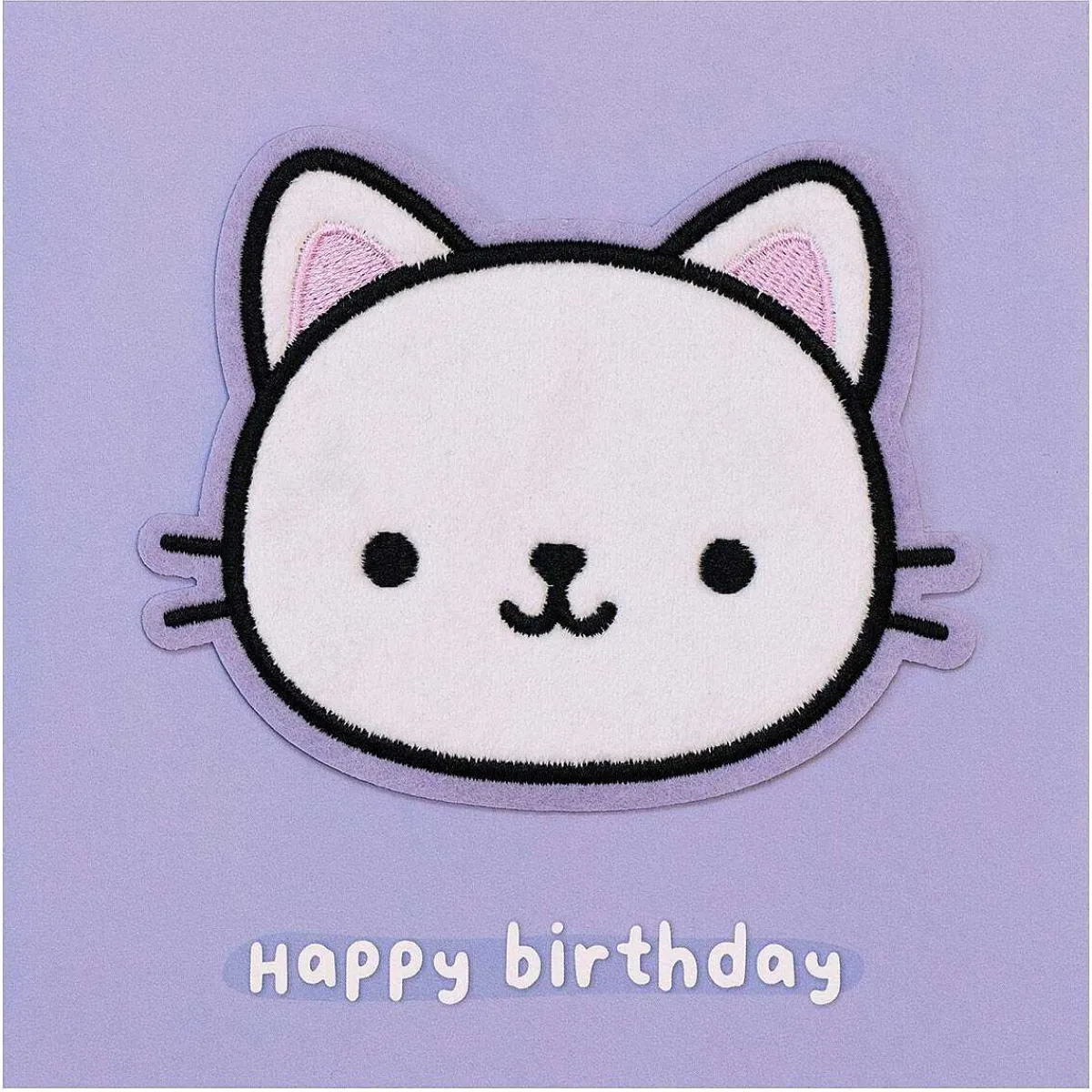 The Card Is Lilac With White Text That Says, ‘Happy Birthday’, And Features A Reusable Kawaii Inspired Lola Kitten Felt Patch Decorated With Stitched Details Which Looks Simply Adorable!