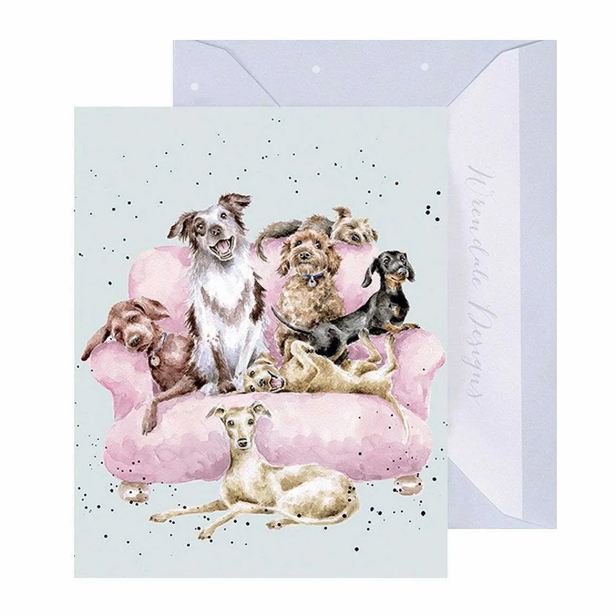 Measuring At Just 9Cm Tall. It Makes A Wonderful Alternative To A Gift Tag Or Greeting Card. This Miniature Card Is Decorated With The Wonderful Design ‘Movie Night’ Which Depicts A Variety Of Dogs Of Different Breeds Including A Yorkshire Terrier, A Border Collie, A Dachshund And More, Set Against Pale Grey Background. The Dogs Have All Settled Themselves On A Baby Pink Sofa And All Have Beautiful Colourings With Shades Of White, Brown And Black. Painted In The Gorgeous Watercolour Styling Of Artist Hannah Dale, This Card Features Speckles Of Black Paint In A Way That Is Very Synonymous With The Wrendale Brand.