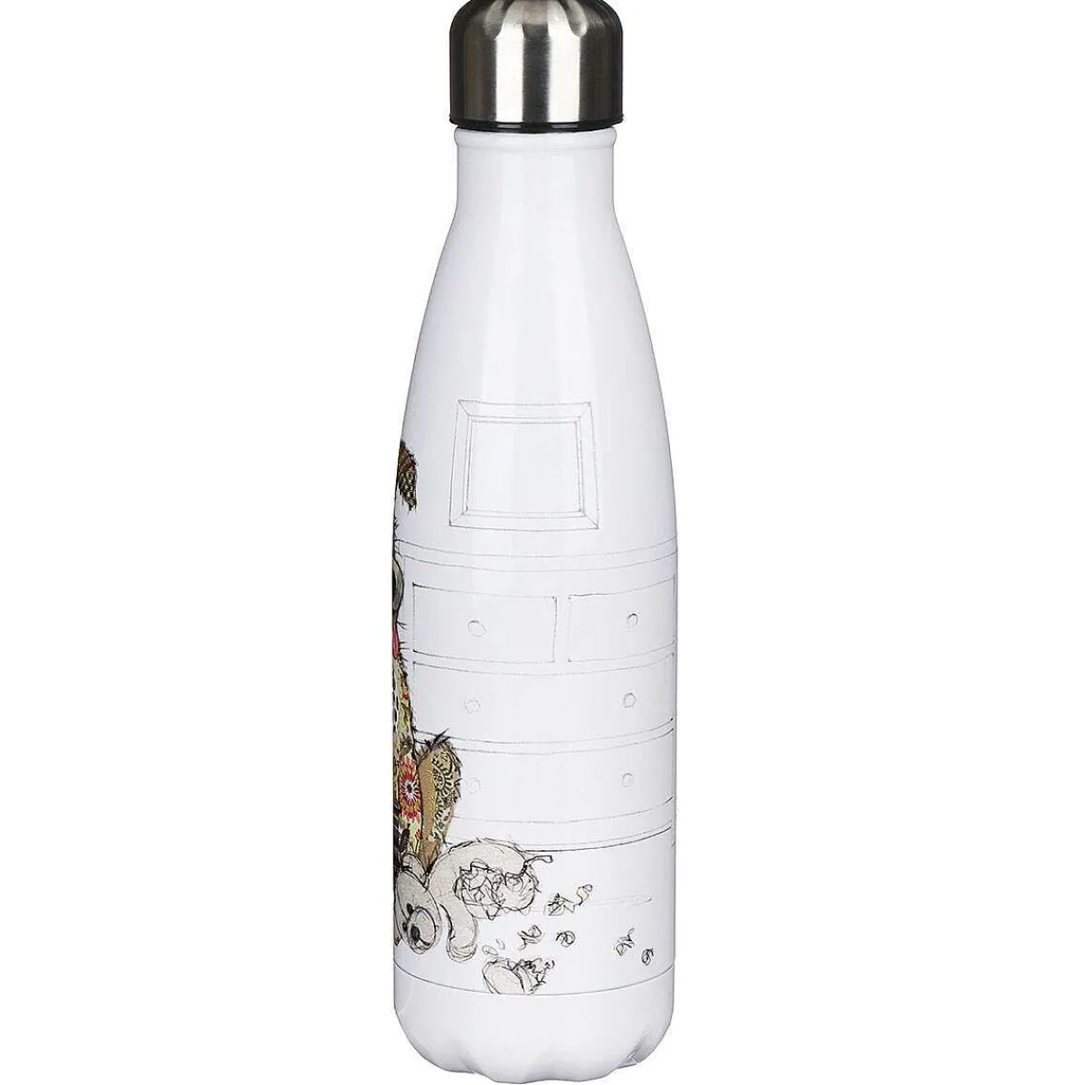 The Design Features A Charming And Playful Illustration Of A Patchwork Puppy, Sat With His Head Turned And His Tongue Pointing Out! On The Floor Next To Him Is A Torn-Up Teddy Which Has Obviously Been Chewed Up! The Striking Design Is Set Against A Crisp White Background And The Screw Cap Lid Is A Contrasting Brushed Metal, Which Is Secure Enough That You Pop It In Your Bag Without The Worry Of Leakages Or Spillages. This Insulated Bottle Is Perfect For Keeping Your Water Cool On A Hot Day.