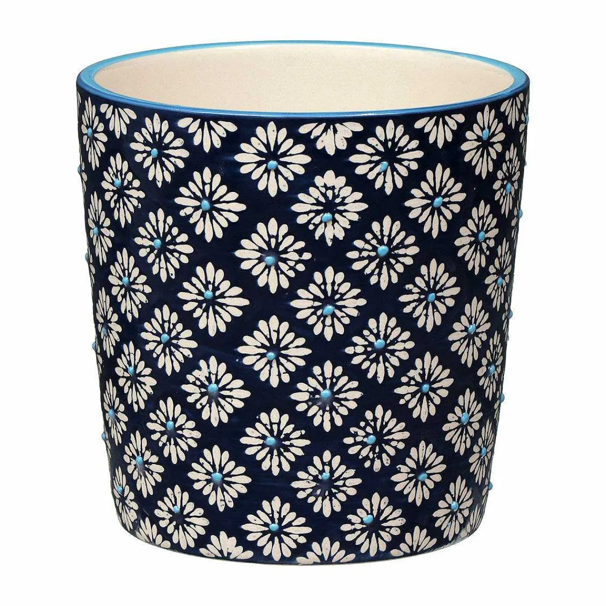 Made From Glazed Ceramics, This Plant Pot Is Embellished With A Contemporary Geometric Floral Pattern, Shaped With A Stylish Simplicity That Has An Artisan Feel.