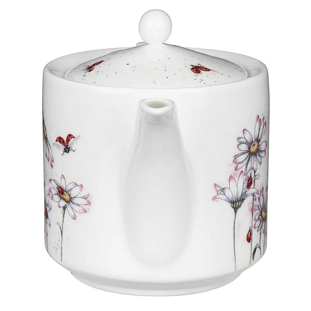 This Stunning Teapot From Royal Worcester Is Part Of The Portmeirion Wrendale Collection And Is Made From Fine Bone China. It Is Decorated With The Adorable ‘Oops A Daisy’ Design; An Adorable Field Mouse Who Is Attempting To Clamber Up And Nibble On The Stems Of Daisy Flowers, Surrounded By Ladybirds. The Delicate Design Is Depicted In Intricate Detail With Pastel Shades Of Pink On The Flowers And Red For The Ladybirds, Whilst The Mouse Is Painted In Soft Shades Of Brown And The Complete Image Is Surrounded By Wrendale’S Trademark Paint Speckling.