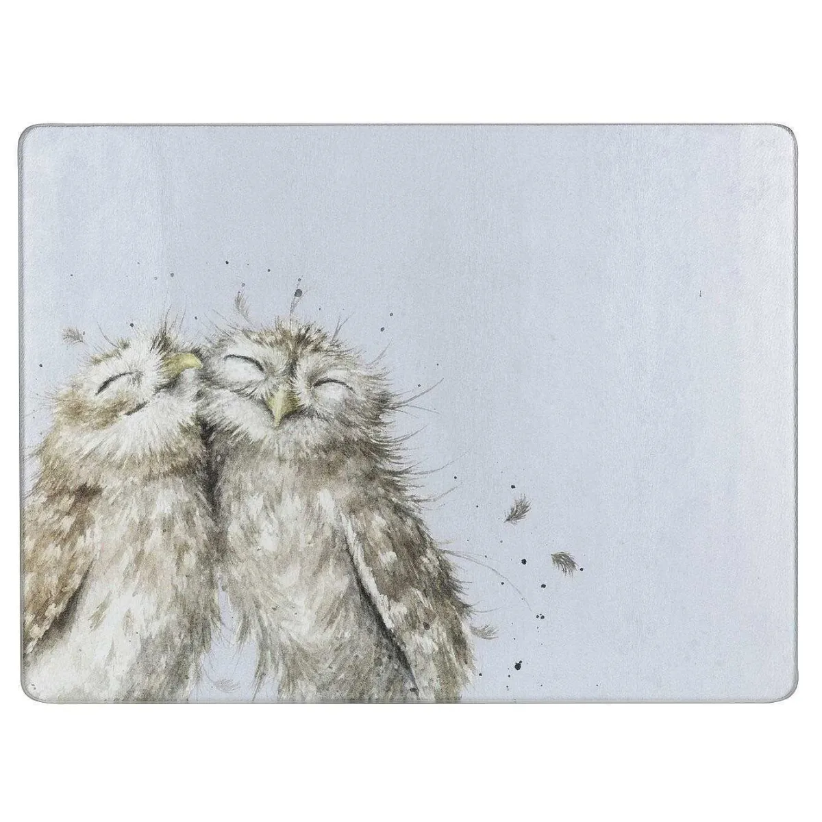 Made From Glass, The Saver Has Four Rubber Feet On The Bottom, Which Slightly Raises It As Well As Helping It Grip To Your Work Tops Or Table. It Is Decorated With One Of Hannah Dale’S Stunning Original Designs Which Shows A Pair Of Happy Owls Snuggling Up To Each Other With Their Eyes Closed And Big Grins On Their Faces.
