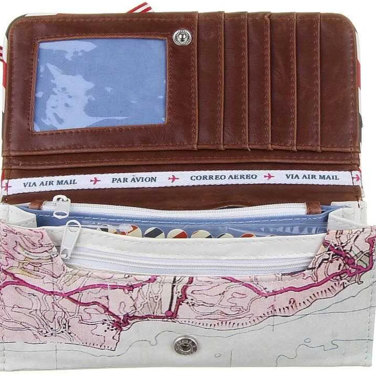 The Back Of The Wallet Has A Map Image Which Continues Inside And Is Fastened With A Popper. Inside The Wallet Is Space For 5 Cards And A Photo, 3 Compartments And 2 Zip Compartments With A Brown Faux Leather Lining. This Is A Perfect Gift For Those Who Love To Travel Or A Great Little Treat For Your Own Handbag.